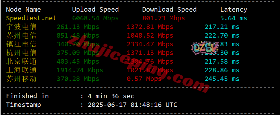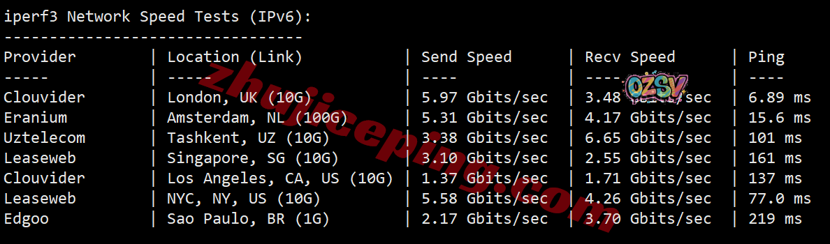 IPv6环境下,IPERF3测试,几个热门节点的数据如下: