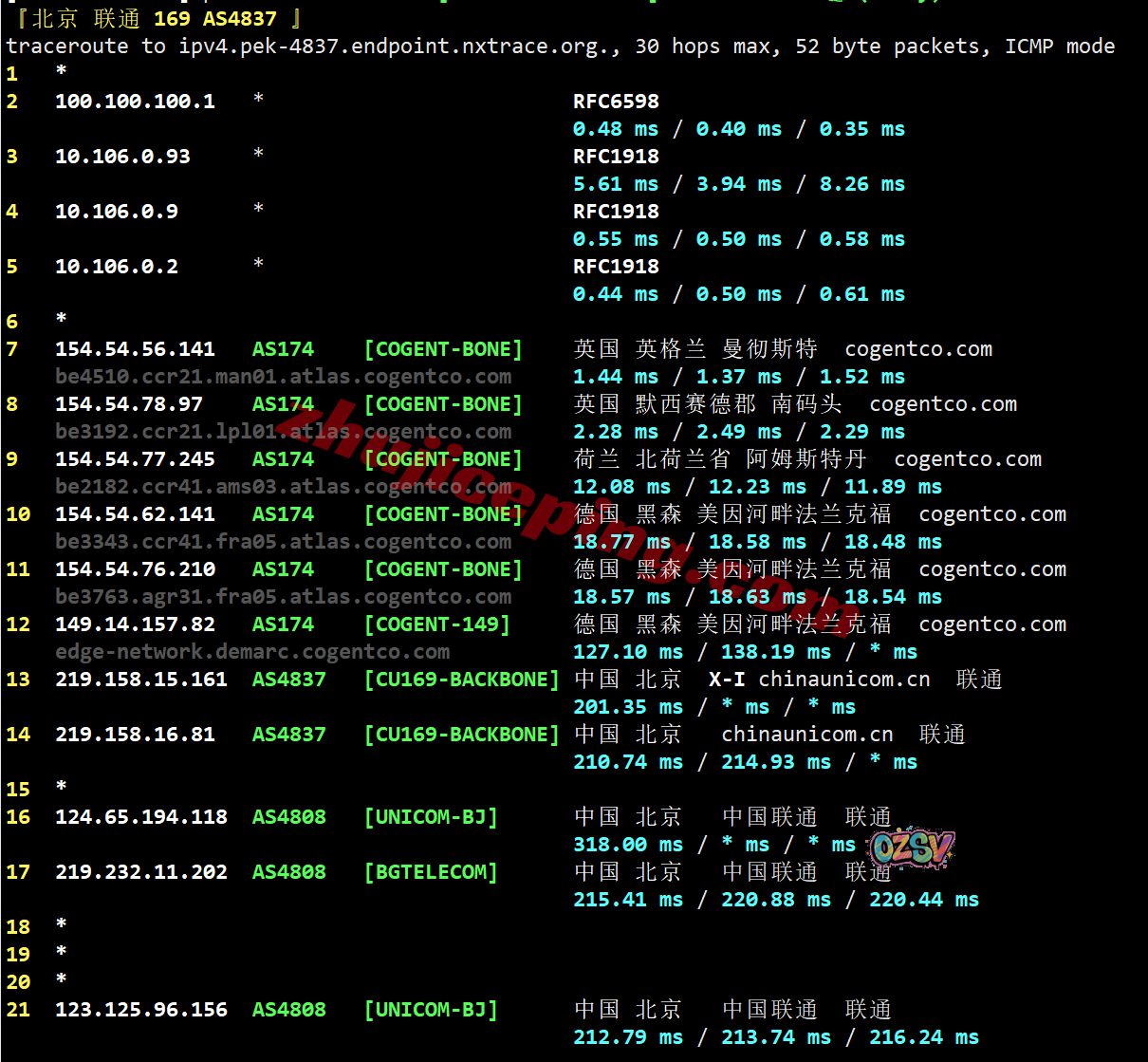 北京、广州方向:走cogent经过荷兰、德国出海回国