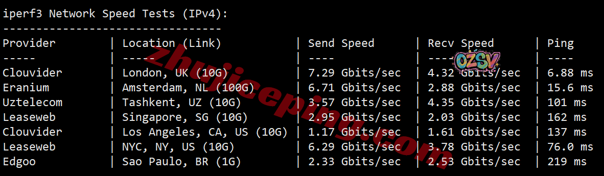 IPv4环境下,IPERF3测试,几个热门节点的数据如下: