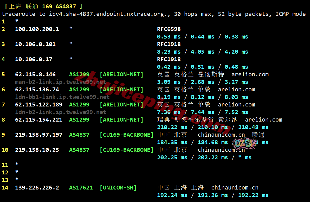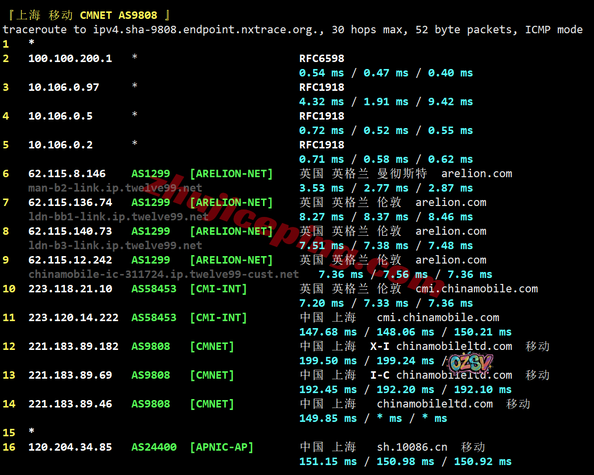 上海方向:走telia去伦敦,从移动伦敦cmi节点直连回国