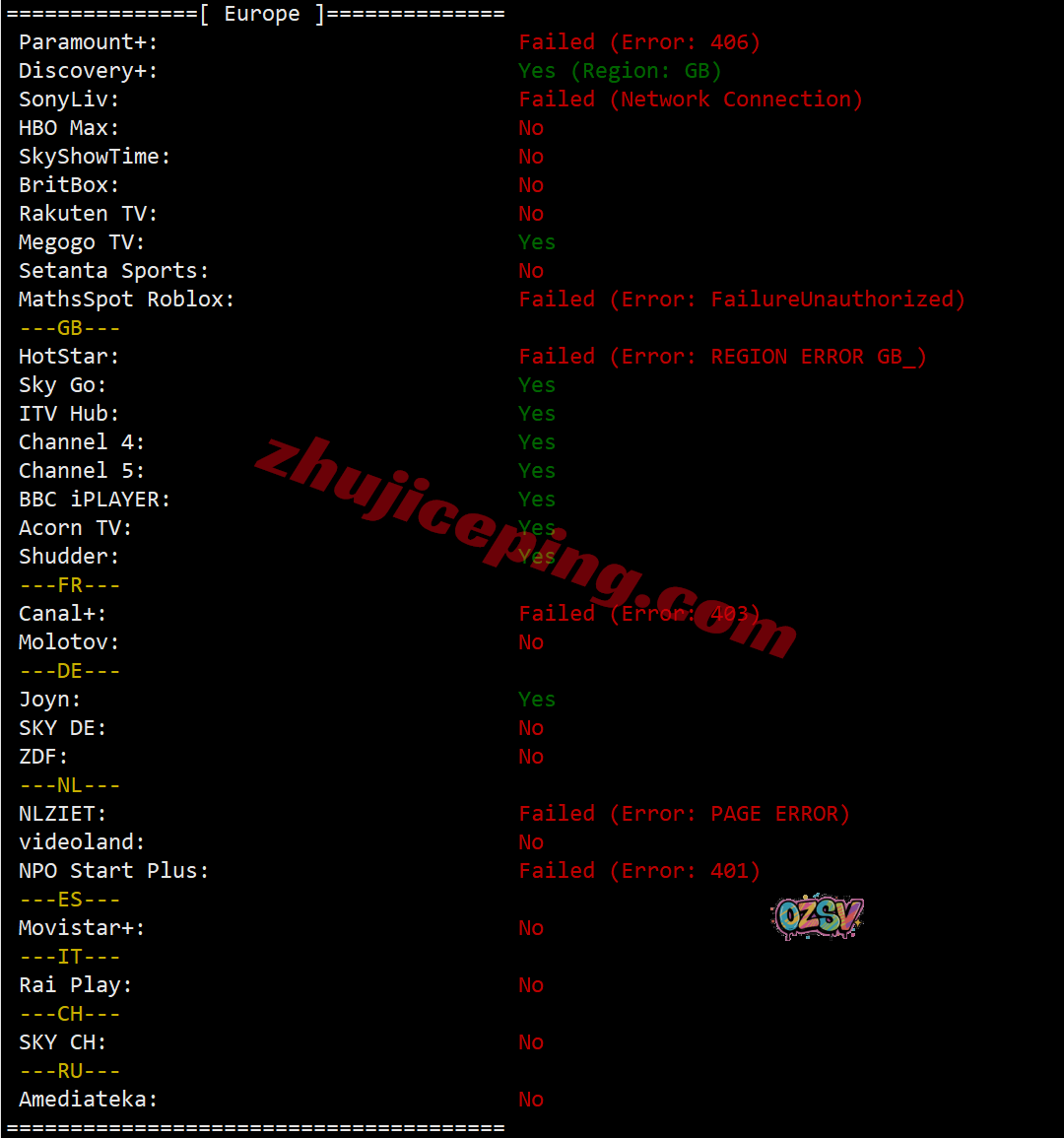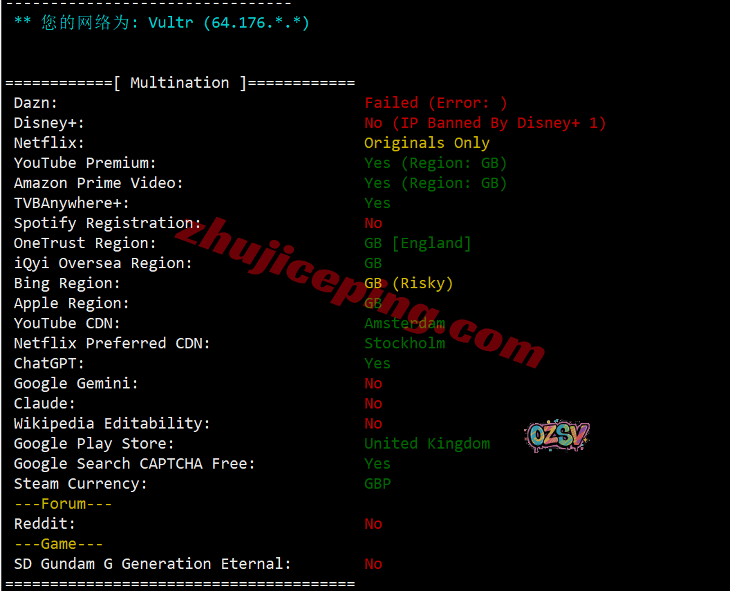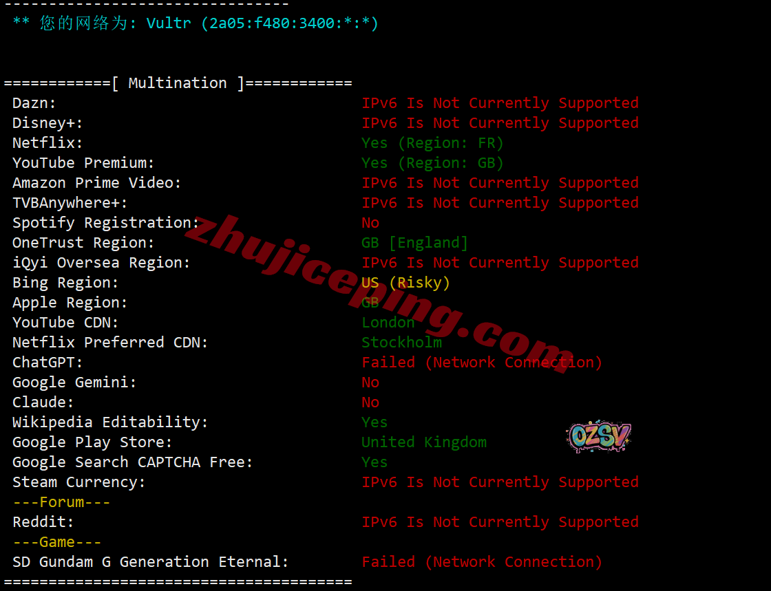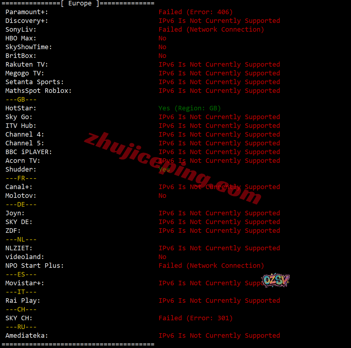 IPv6环境下,部分流媒体解锁测试,大致结果: