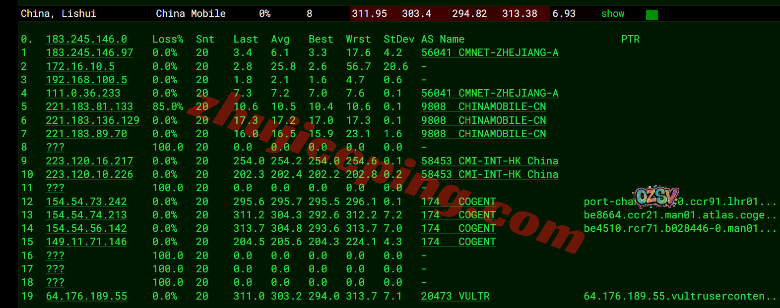 移动去程:直连英国伦敦节点然后接cogent去曼切斯特