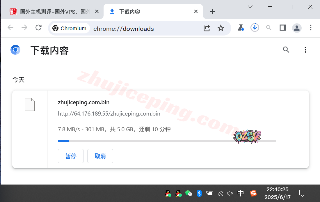 存放在测试云服务器上的文件,站长广州联通家宽直接用Chrome来下载这个文件,大致的下载速度如下: