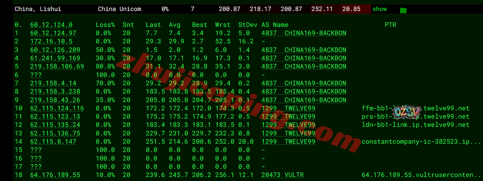 三网回程:纯粹的国际线路,部分绕道美国,部分国际线路回国,没有任何优化…