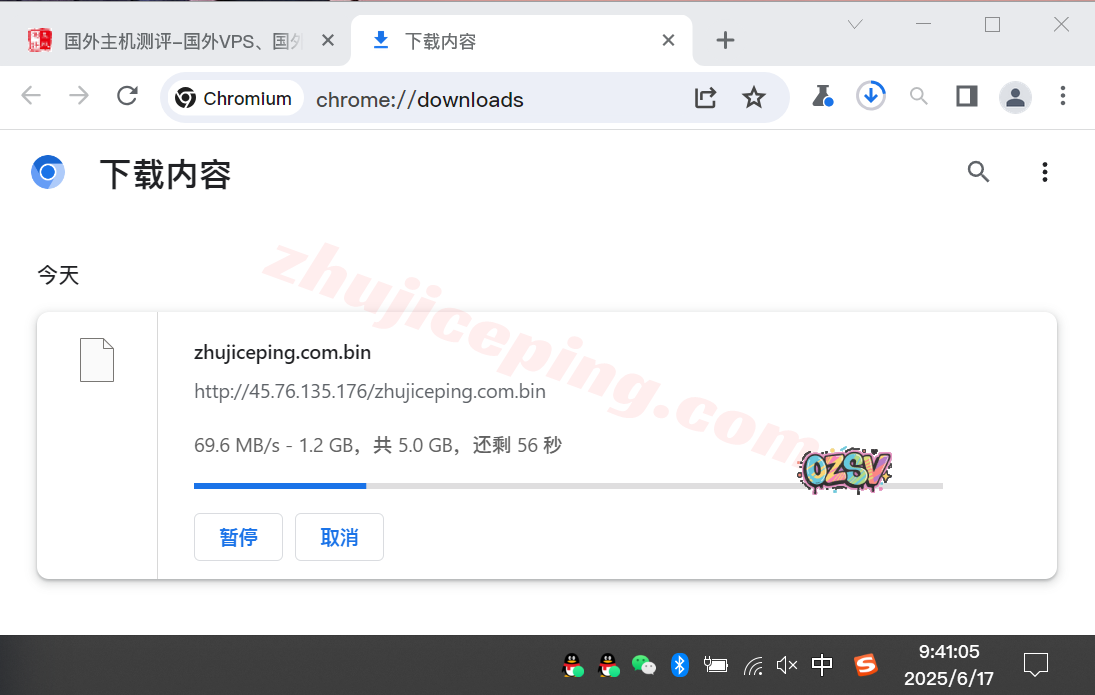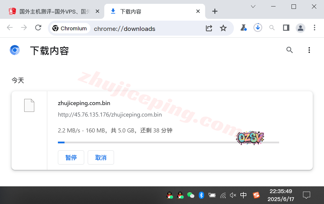 存放在测试云服务器上的文件,站长广州联通家宽,直接用浏览器下载该文件,大致的下载速度如下: