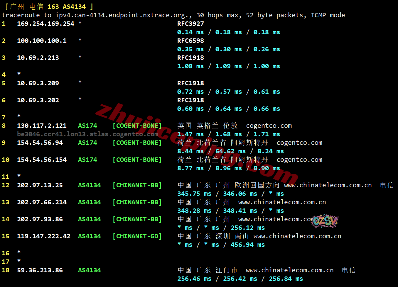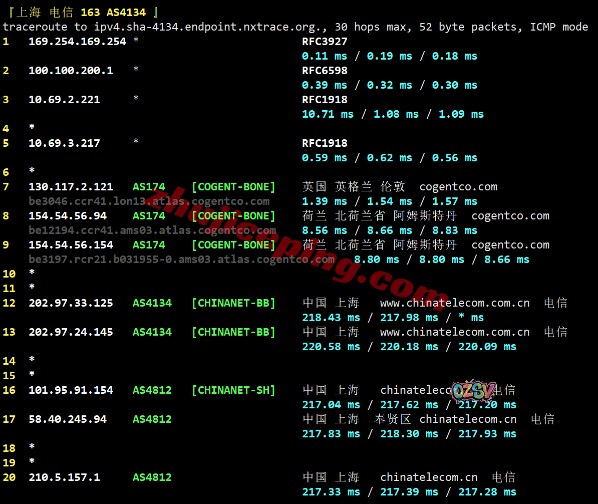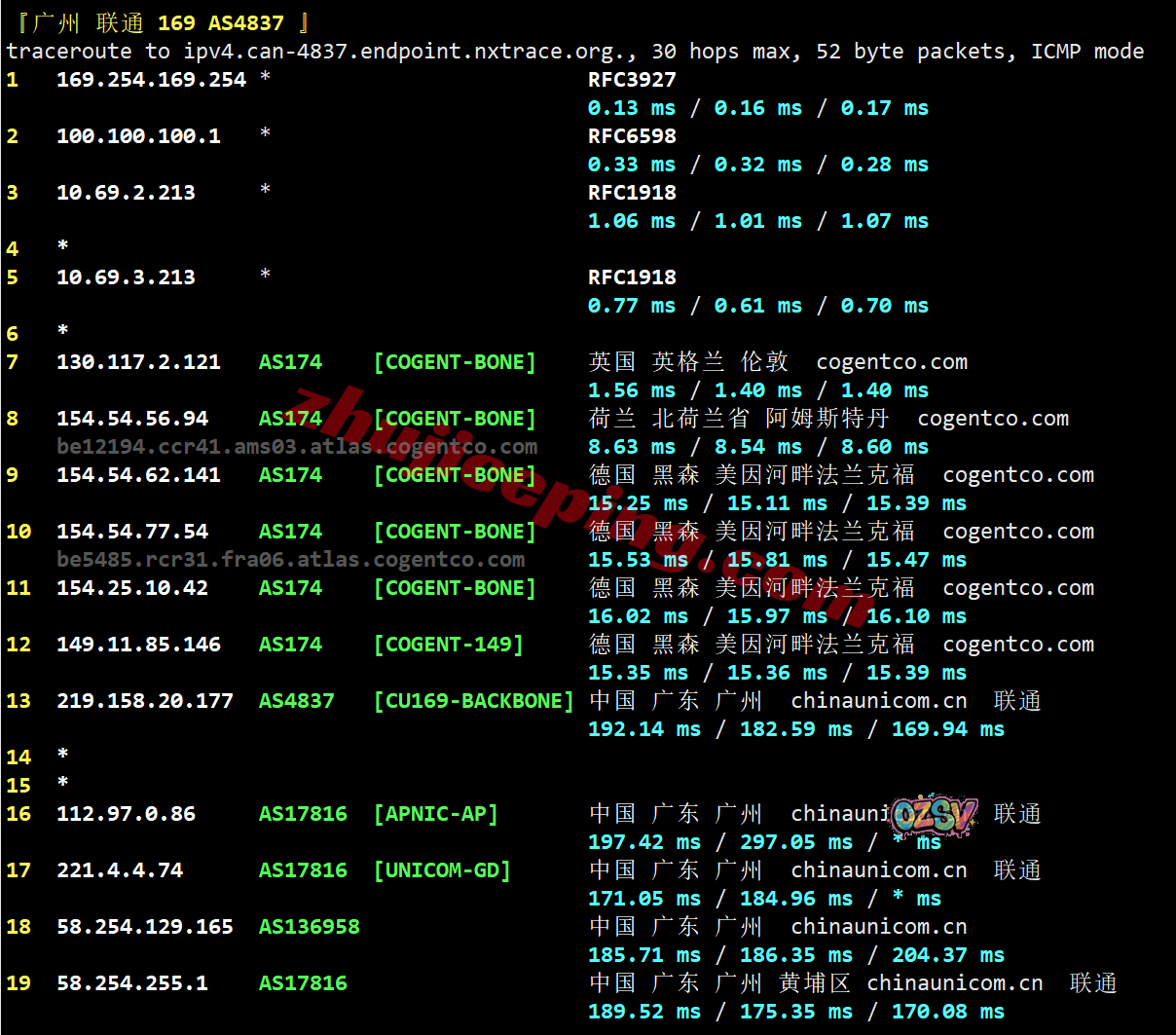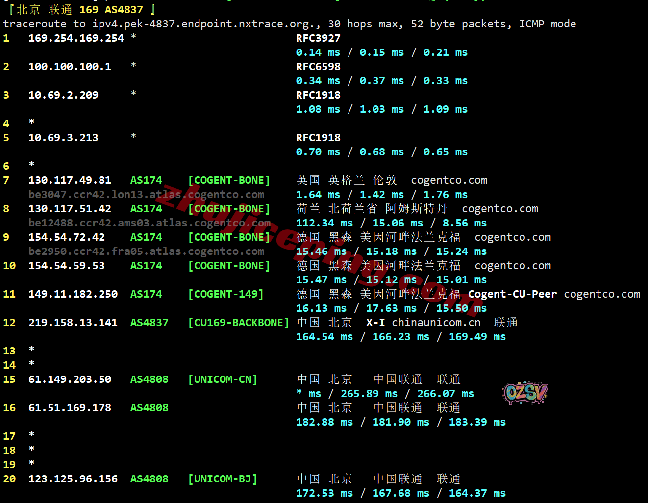 北京方向:走cogent经过荷兰、德国,从联通法兰克福peer出海回国