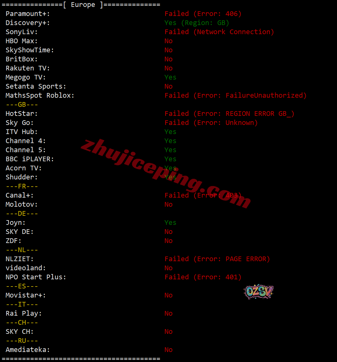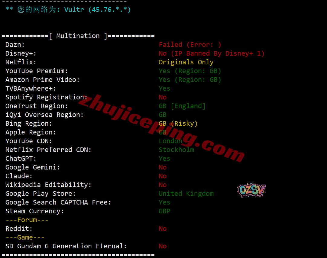 IPv4,部分流媒体解锁测试,大致结果如下: