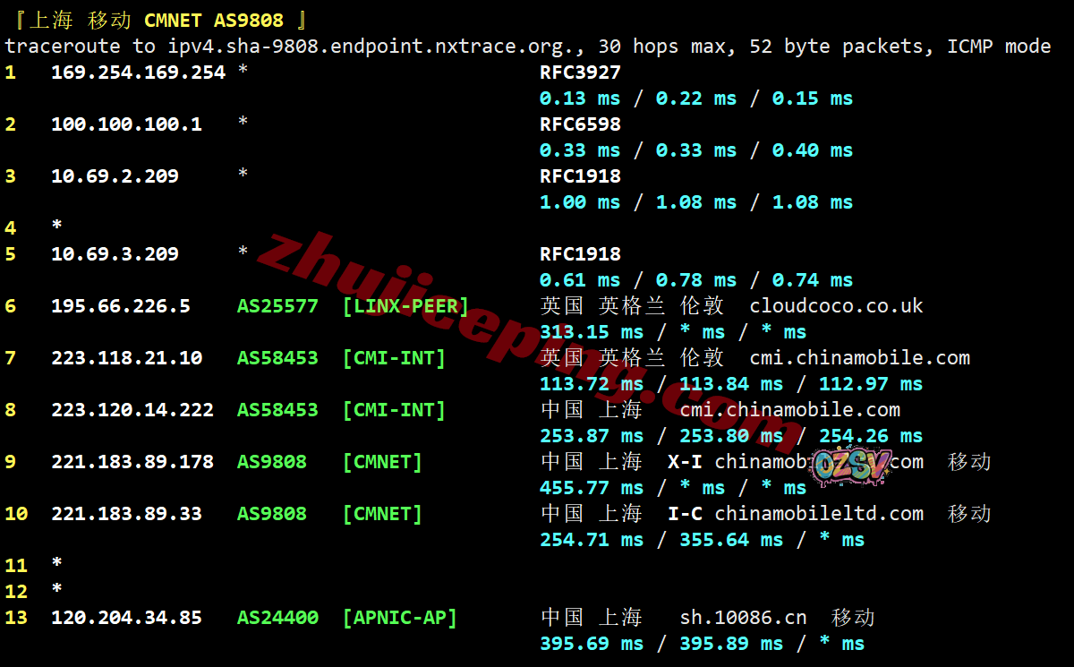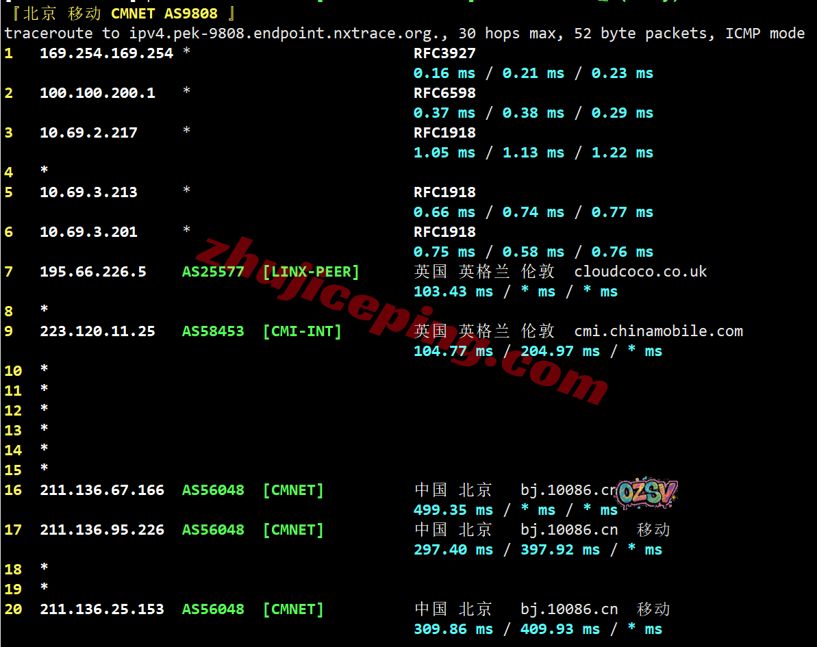 北京、上海方向:内网接Linx转移动英国伦敦CMI节点出海回国