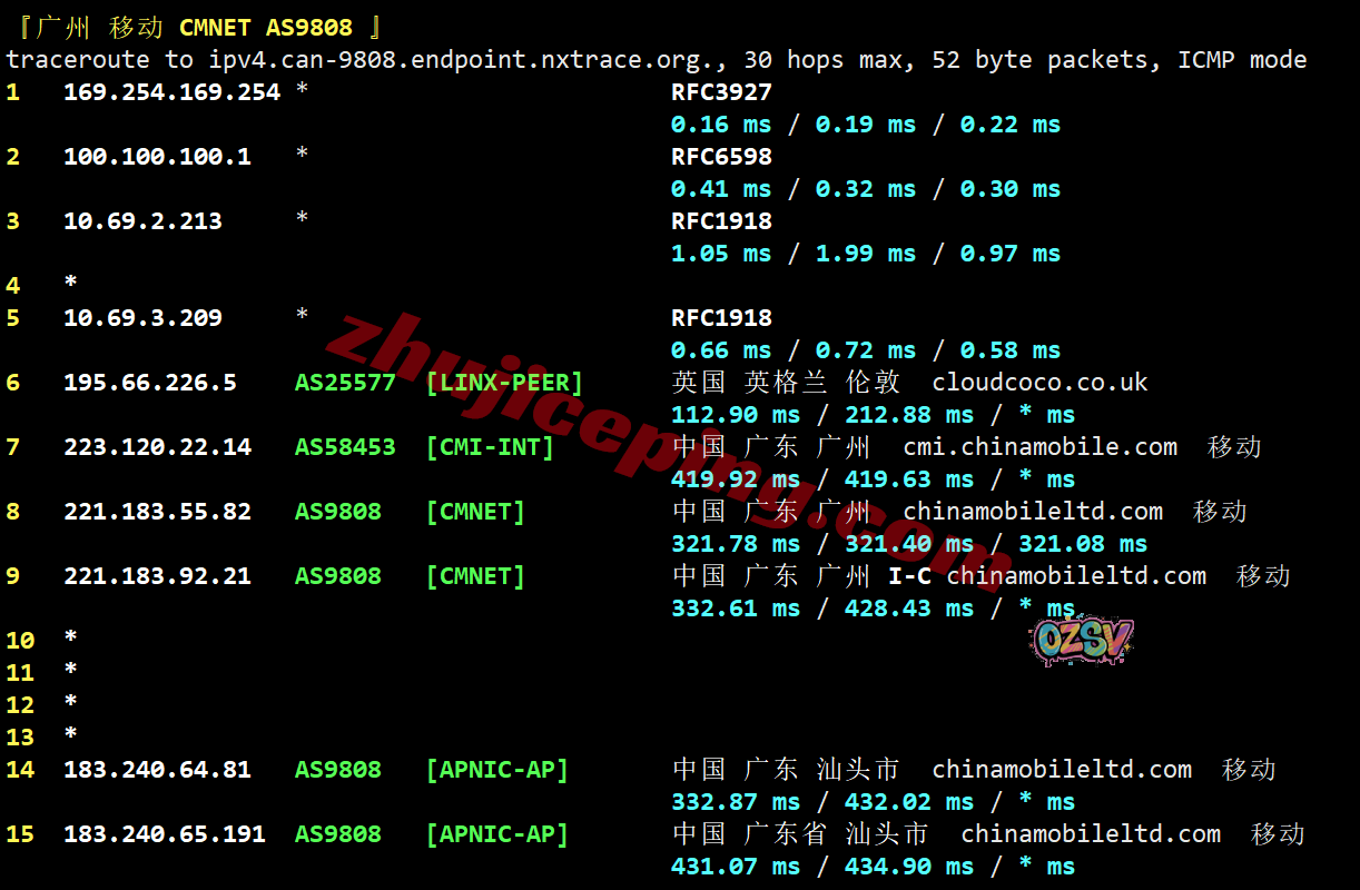 移动去程:直连移动英国伦敦节点然后接PCCW去机房
