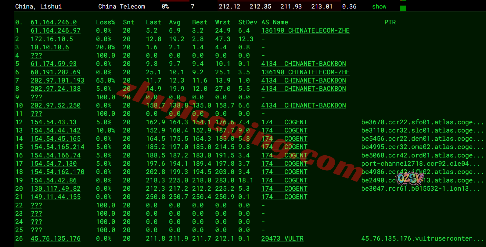 电信去程:直连电信美国圣何塞节点,然后接cogent一路东去从纽约出海去英国伦敦