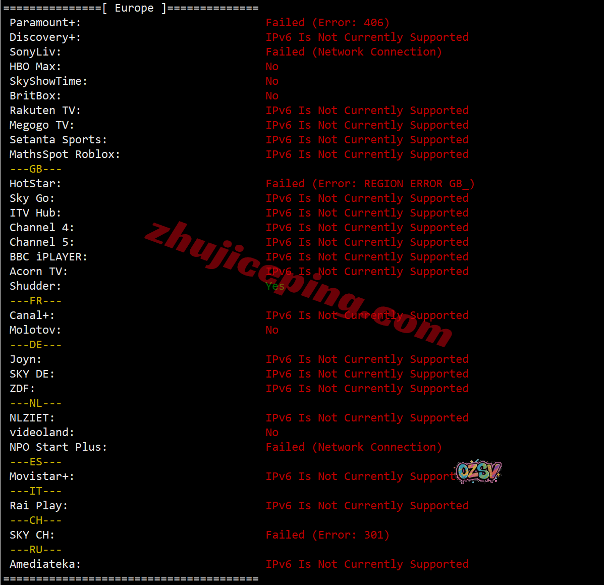 IPv6,部分流媒体解锁测试,大致结果如下: