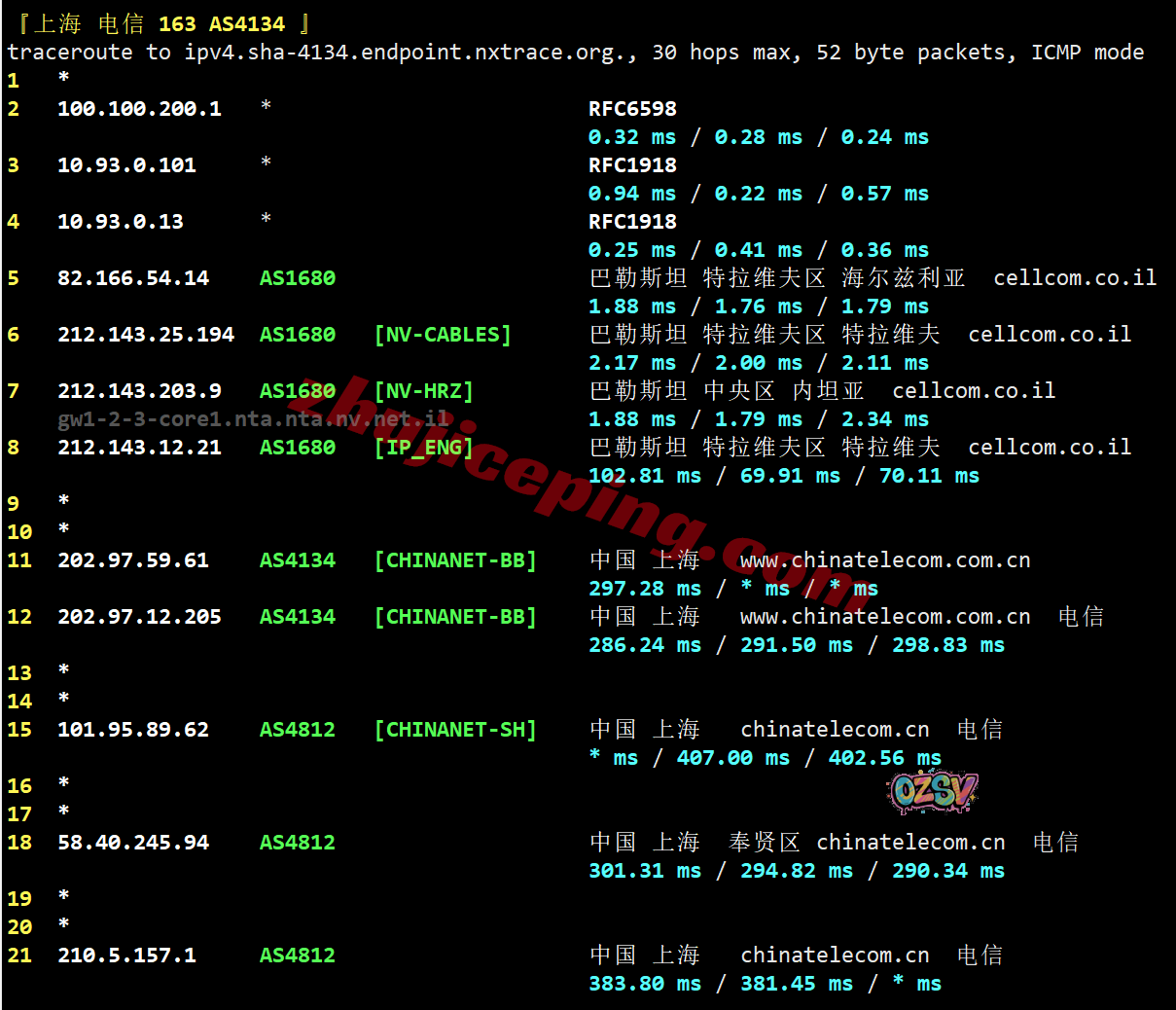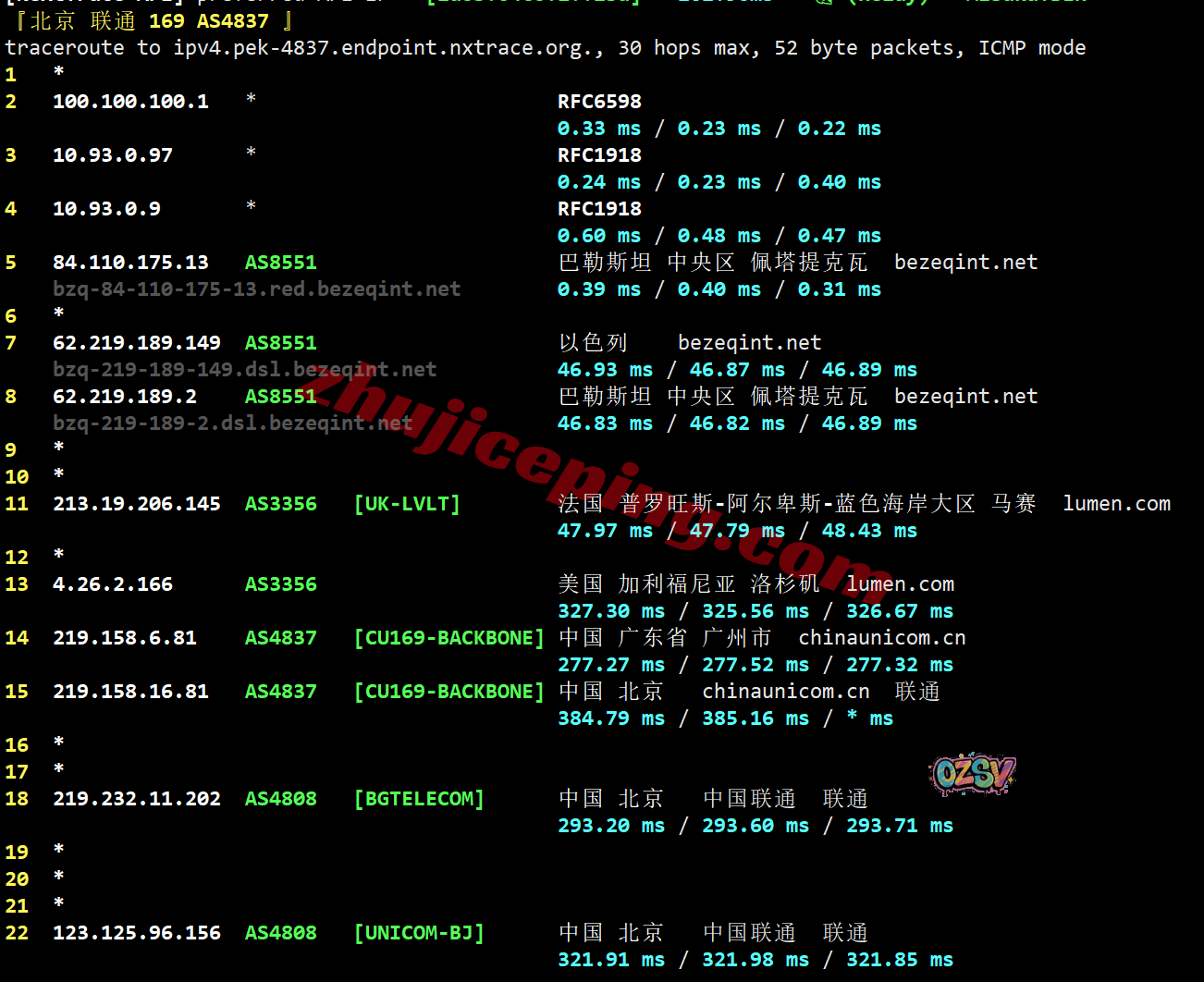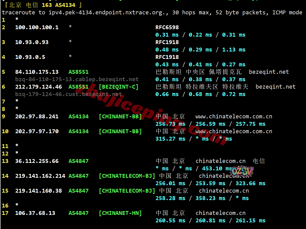 北京、广州方向:内网接bezeqint经过巴勒斯坦,然后看不到路由了…