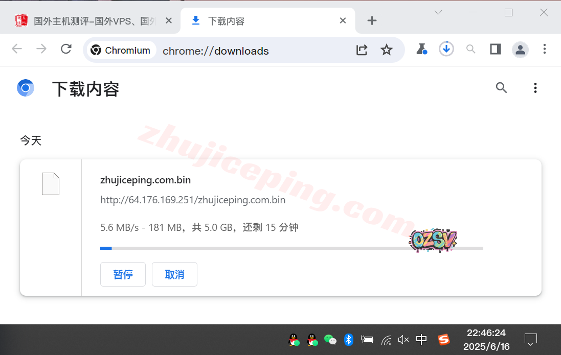 存放在测试云服务器上的文件,站长广州联通家宽直接用Chrome下载该文件,大致的下载速度如下所示: