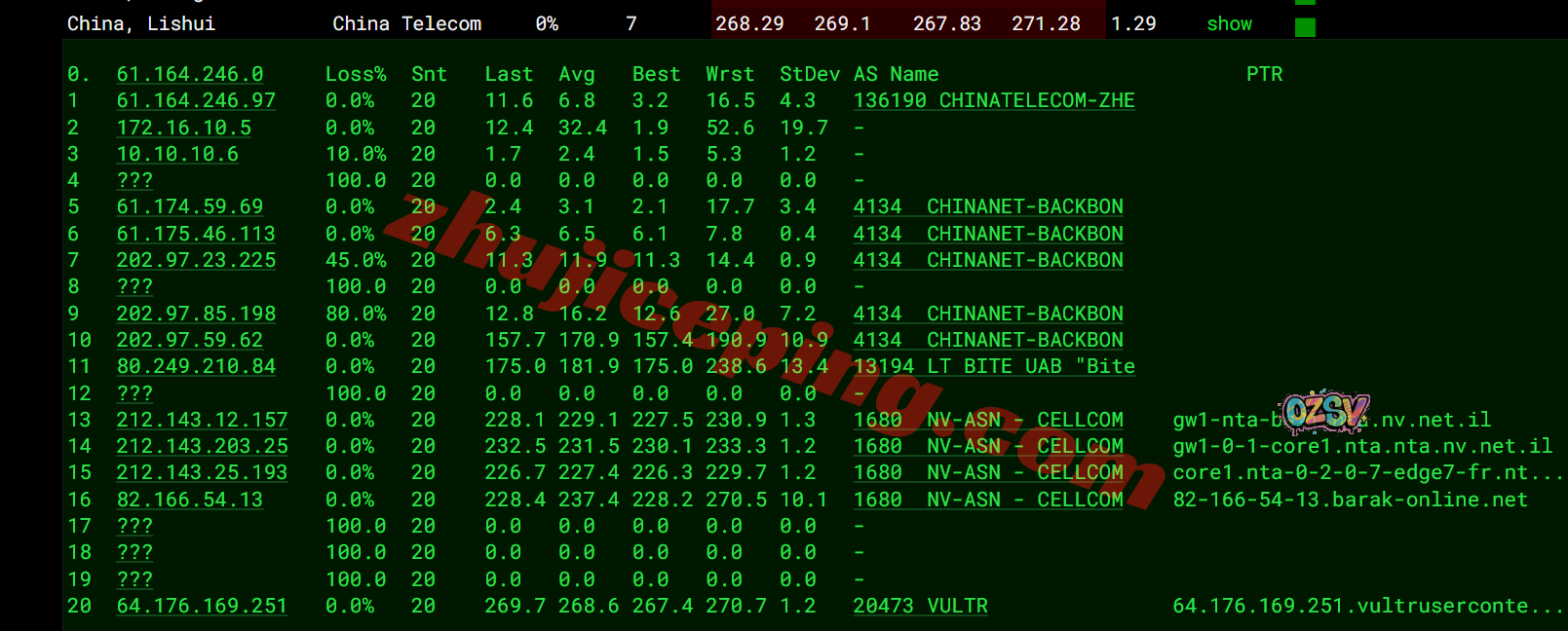 电信去程:直连电信荷兰阿姆斯特丹节点,然后经过Bite Lietuva再接NV.NET.IL到以色列