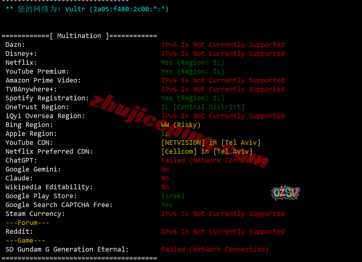 部分流媒体解锁测试(IPv6环境下),大致结果如下: