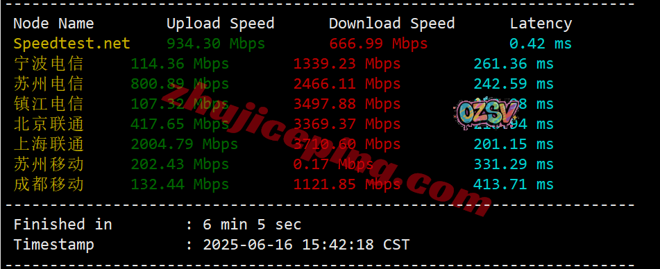 IPv6环境下,IPERF3测试,几个热门节点的测试效果如下: