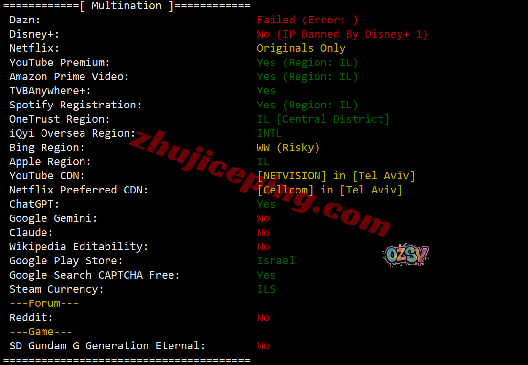 部分流媒体解锁测试,大致结果如下: