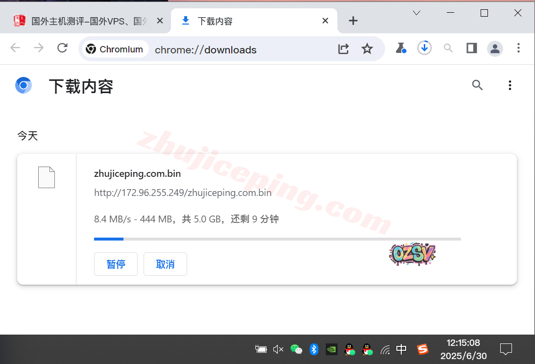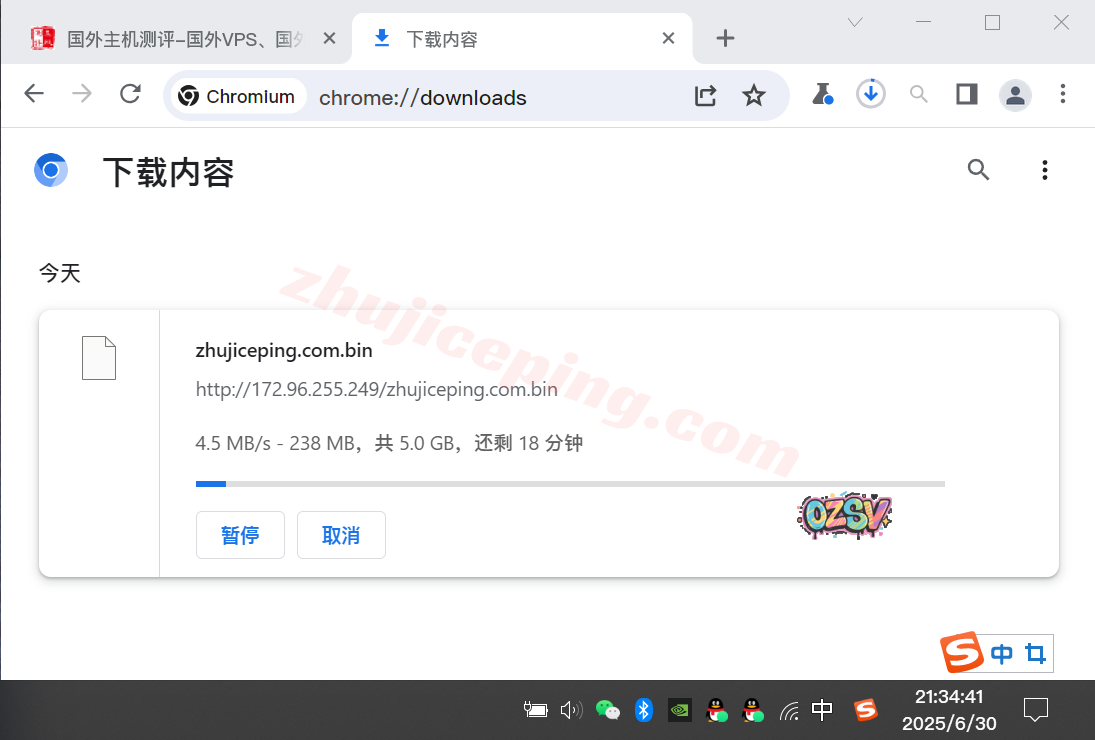 存放在测试VPS上的文件,站长广州联通家宽直接用Chrome下载该文件,大致的下载速度如下所示: