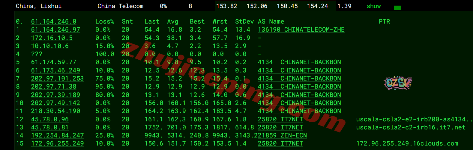 国内三网一百多个节点的延迟测试数据:
