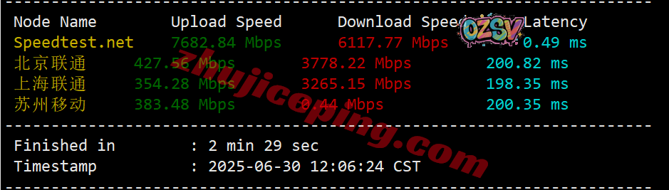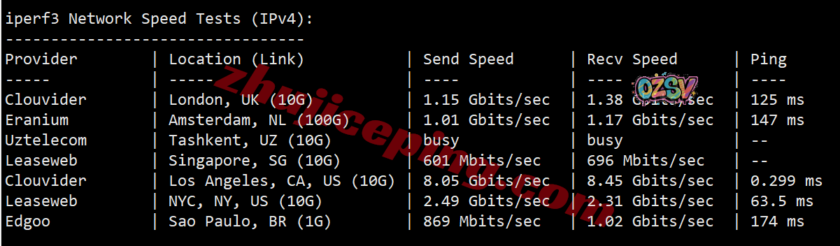 IPERF3测试,几个热门节点的实测结果如下: