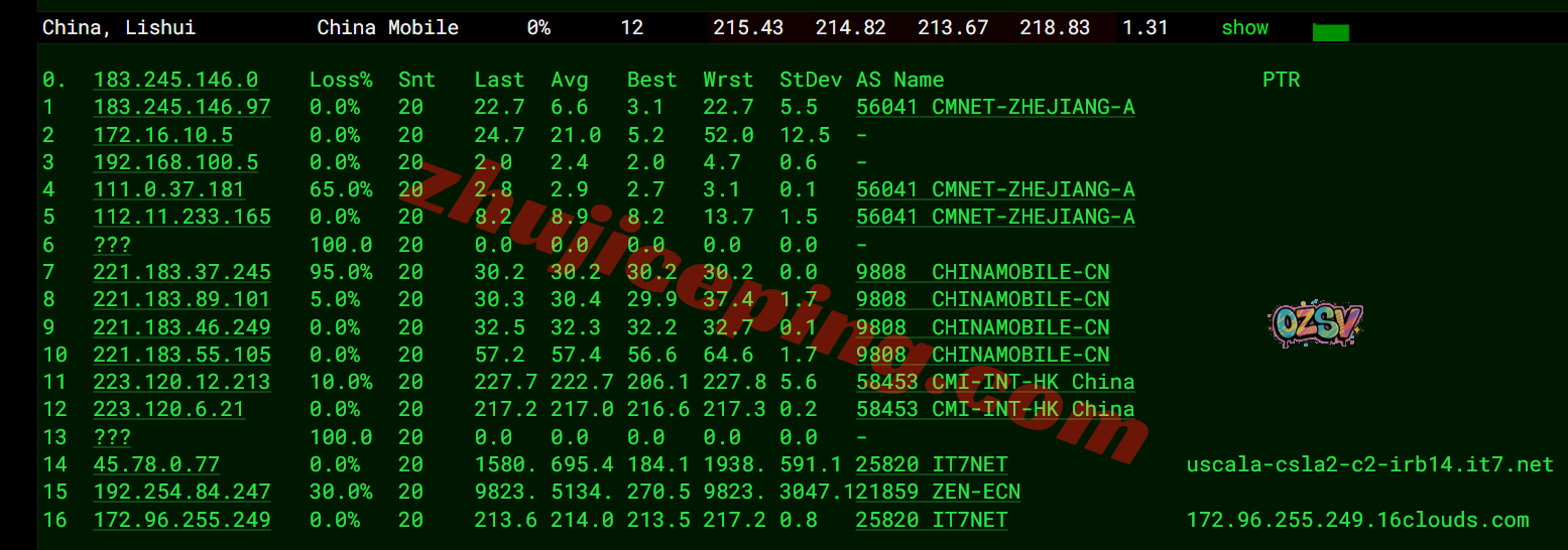 移动去程:直连移动美国洛杉矶节点然后接搬瓦工网络去机房