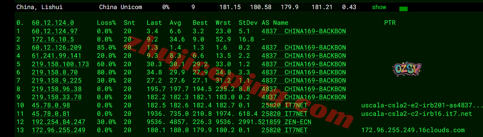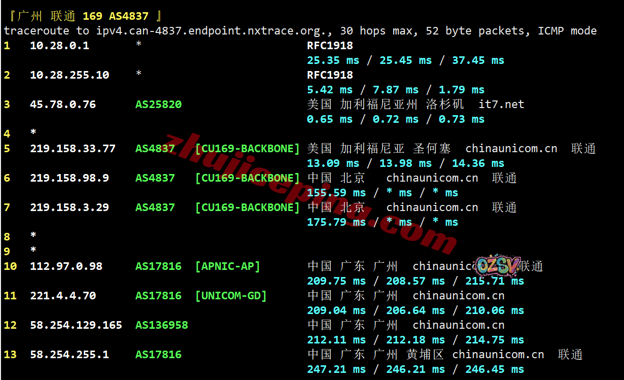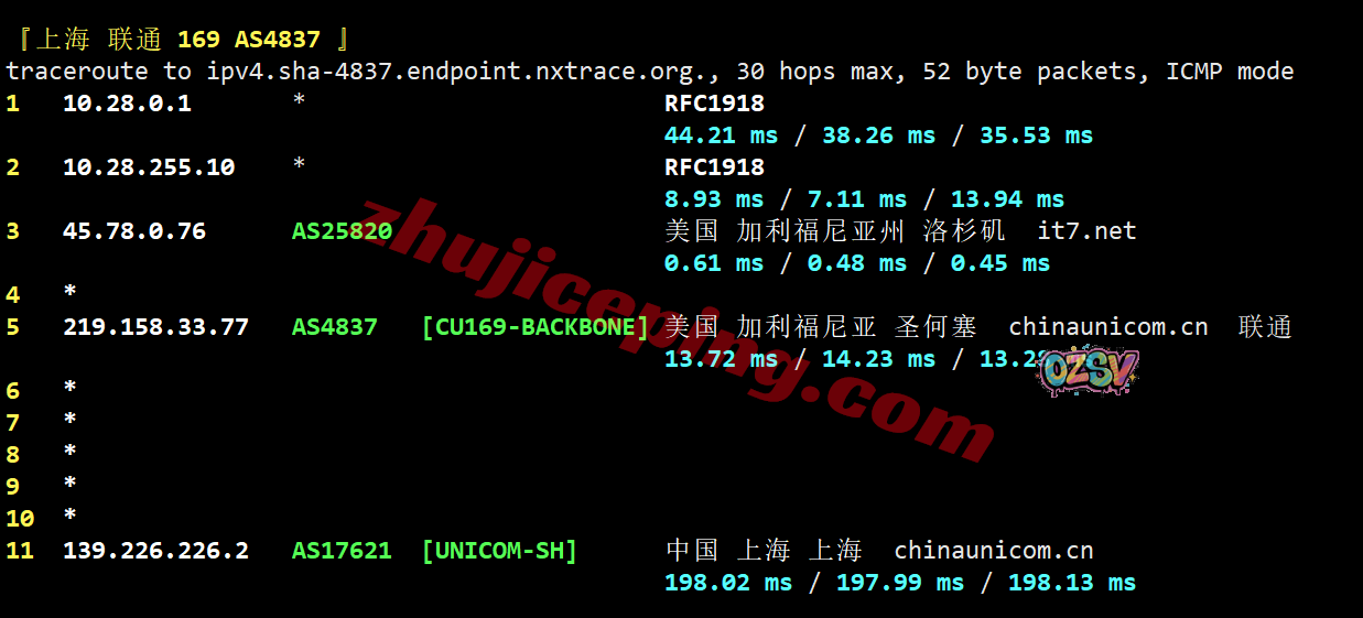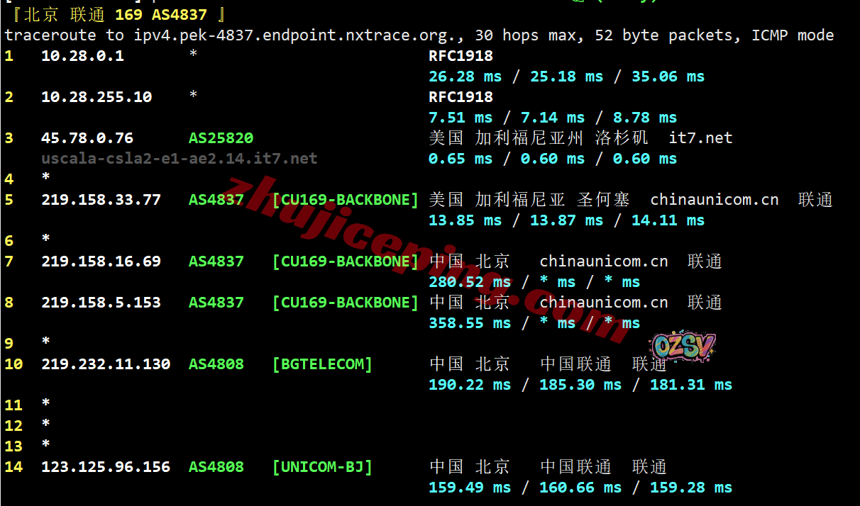 联通去程:直连联通美国圣何塞节点然后去洛杉矶