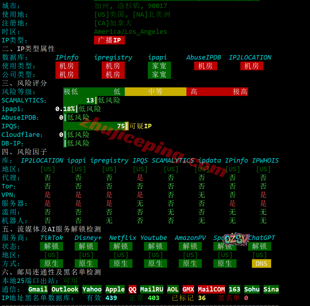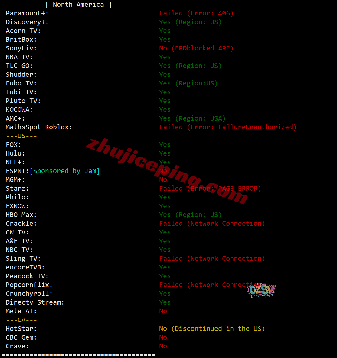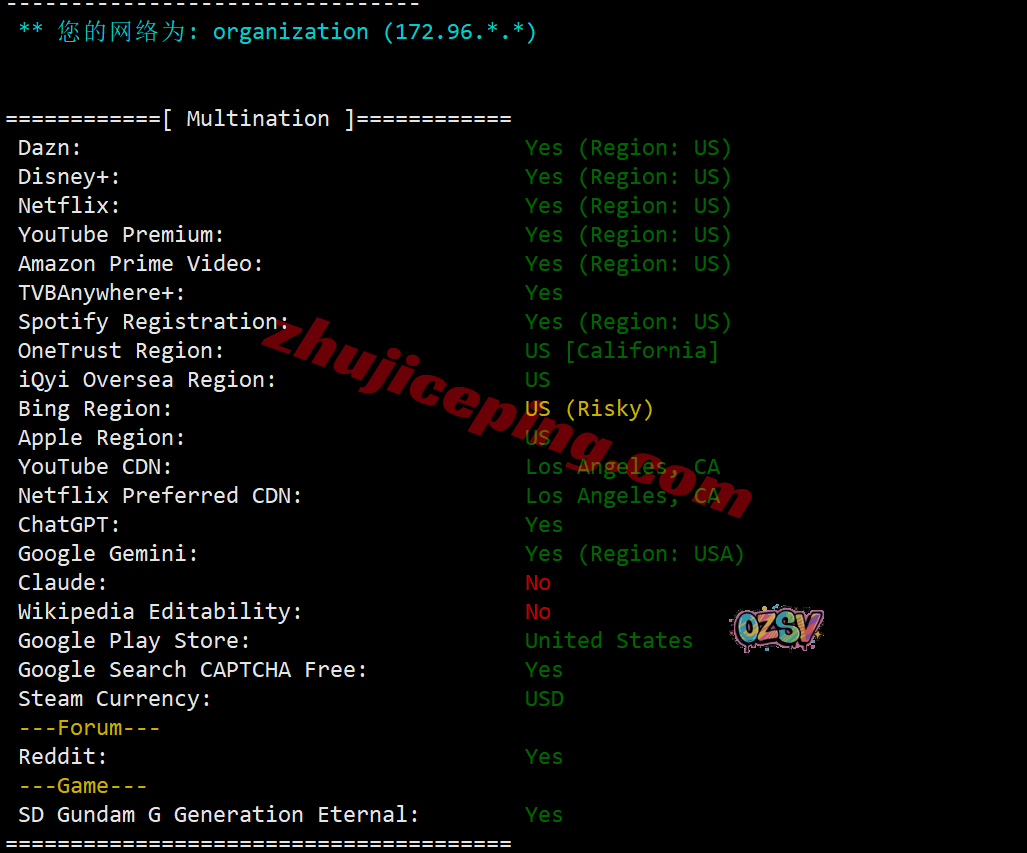 部分流媒体解锁测试大致结果如下所示: