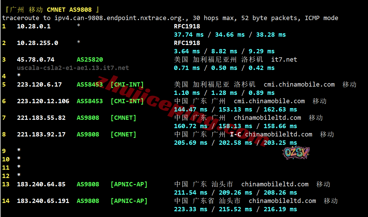 广州方向:机房出来接移动洛杉矶CMI节点直连出海回国
