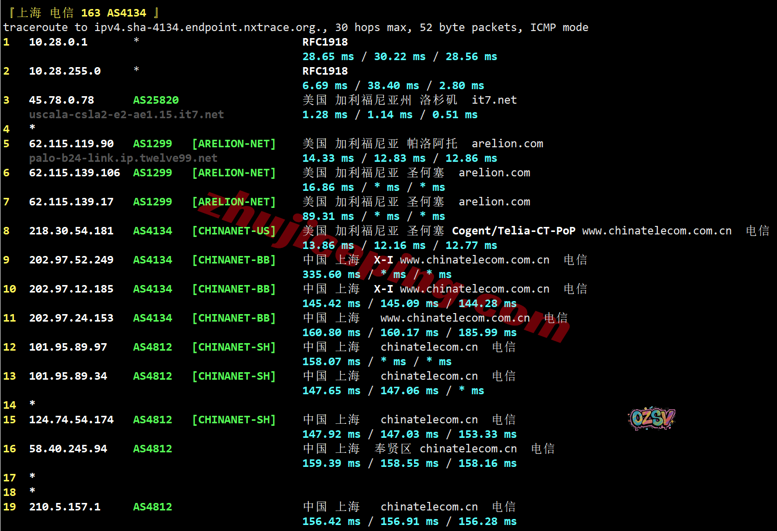 上海方向:机房出来接telia去圣何塞,从电信美国圣何塞peer/cogent/telia出海回国