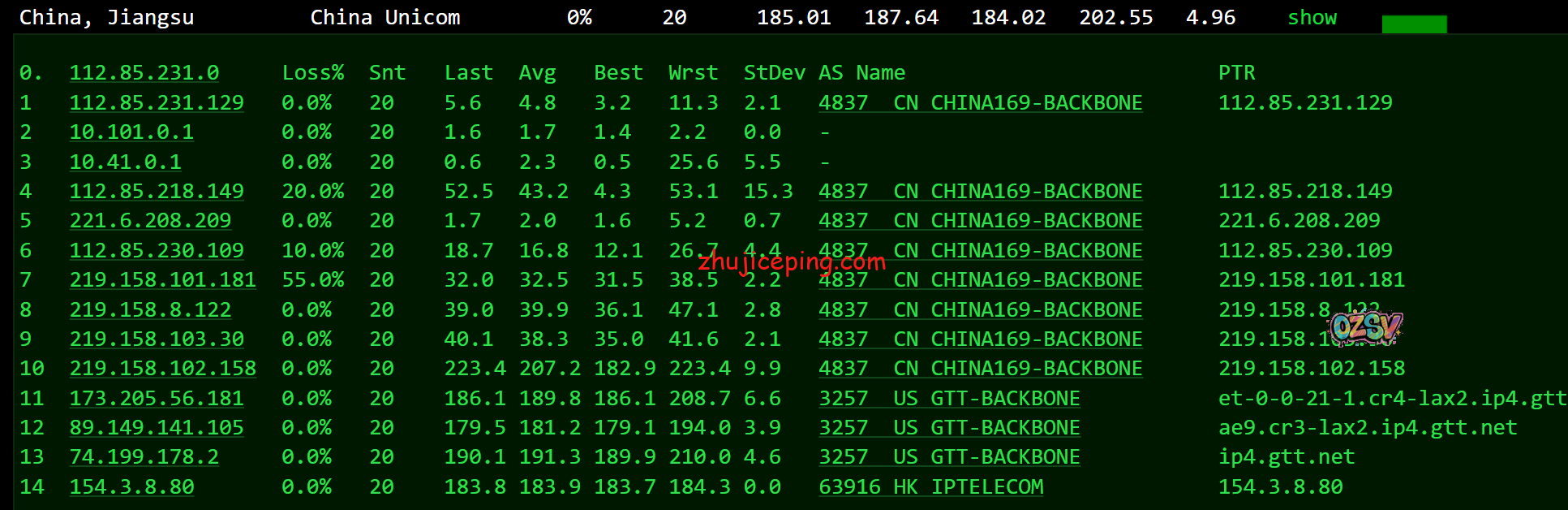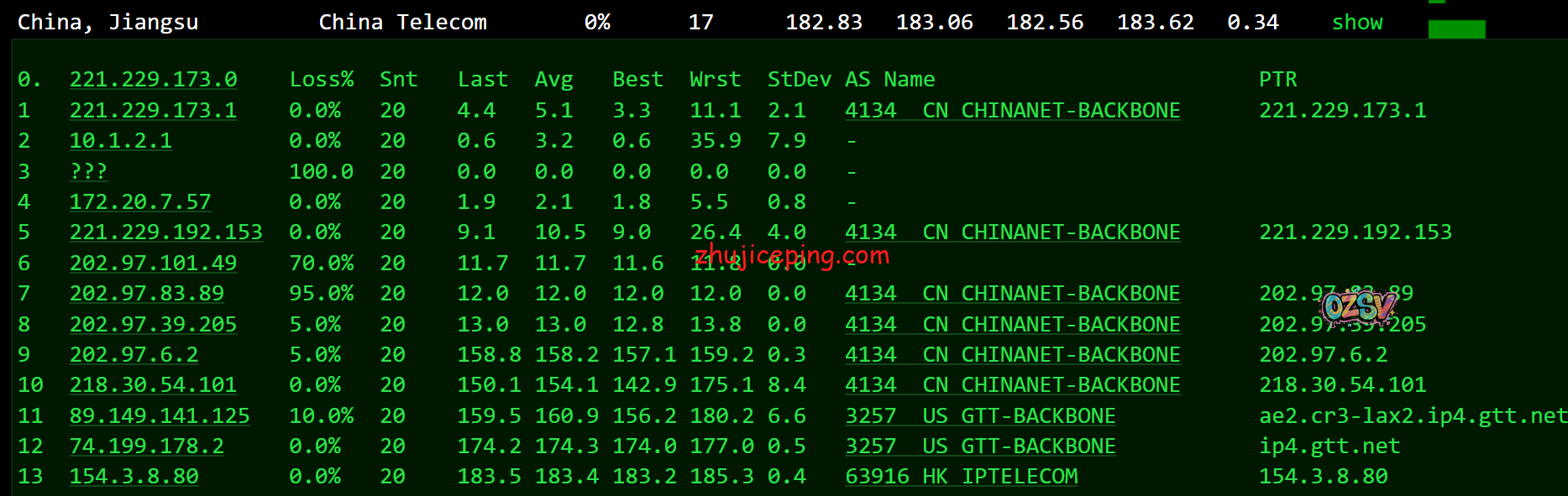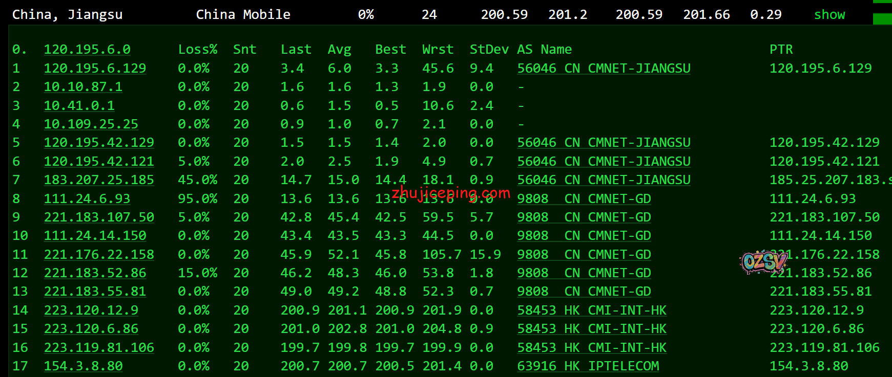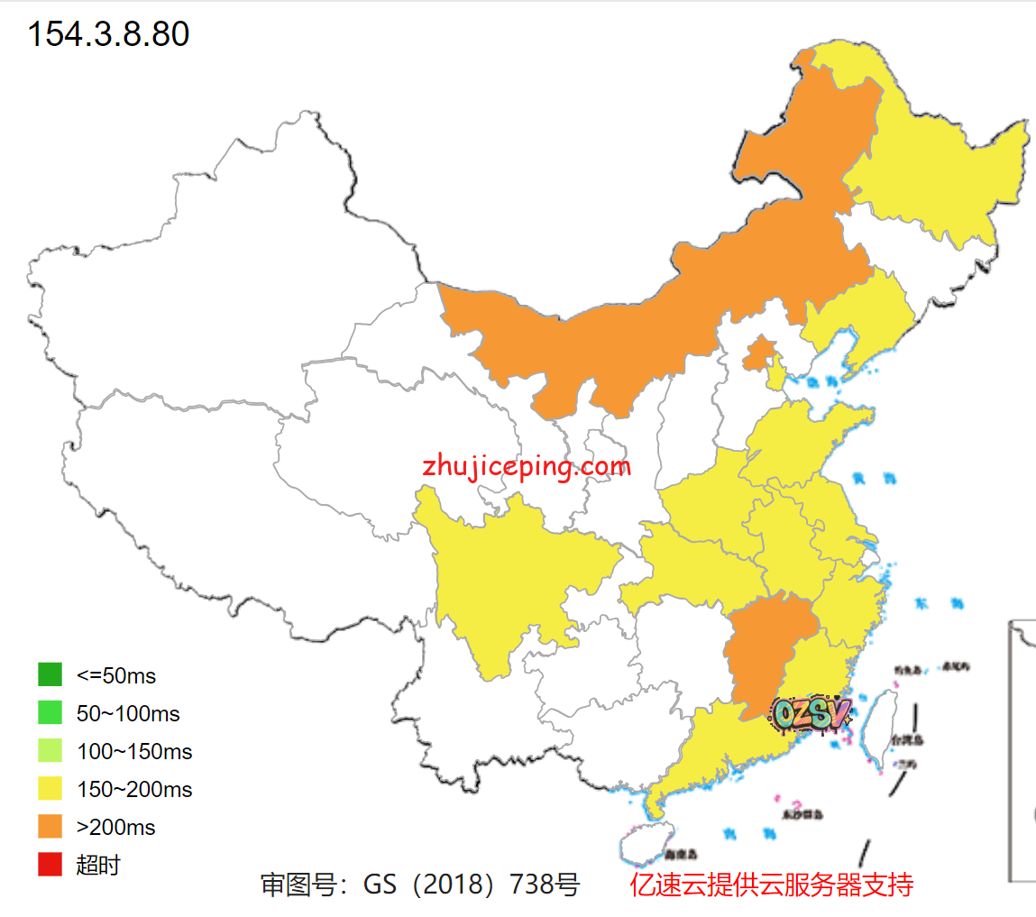 关注延迟的可以看看数据,ping.chinaz.com的国内大致80个节点的测试结果:
