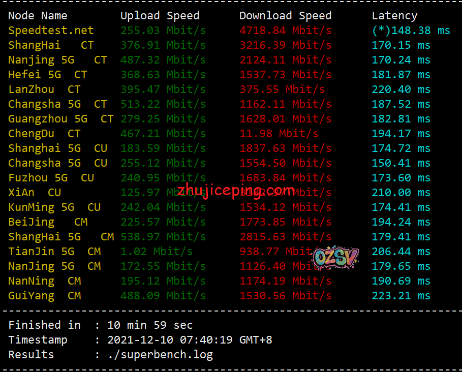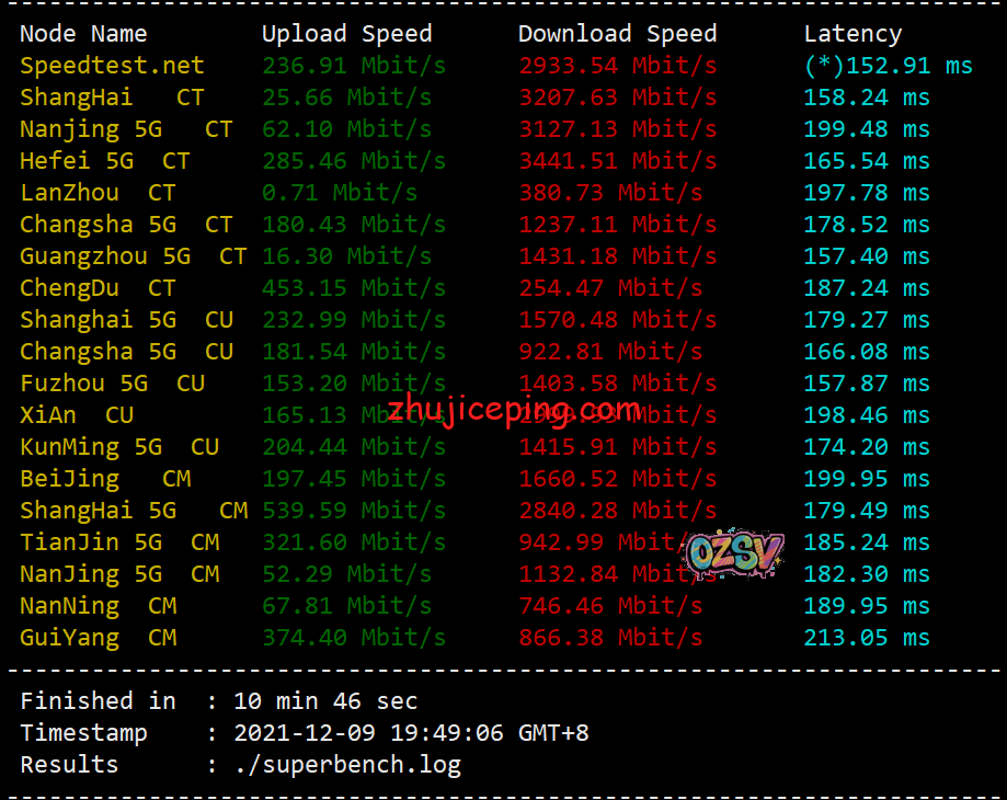 来关注一下speedtest.net的国内三网节点,看看具体上下行带宽可以跑到多少吧,先看看晚高峰时间段的: