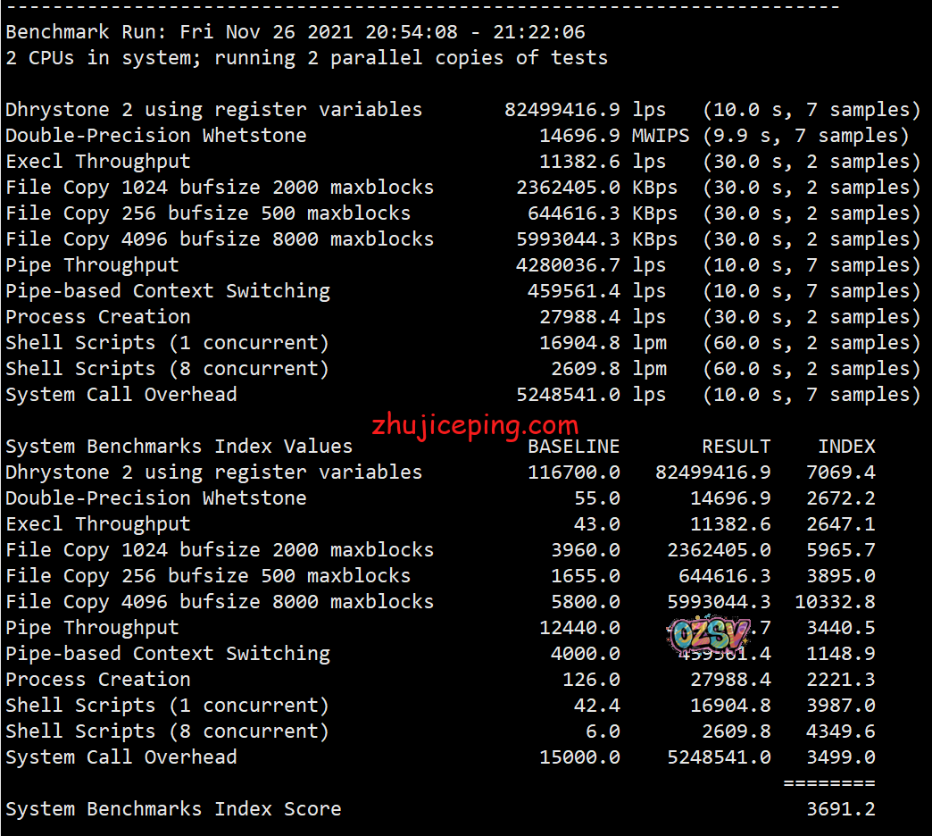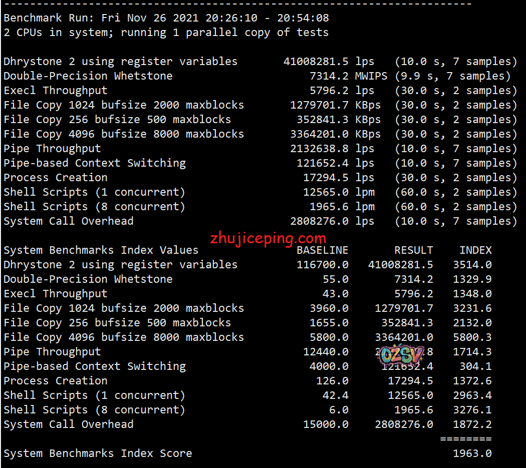 带一下Unix bench吧,这玩意儿没有太大的意思,反正都是共享。这跑分,屌爆了: