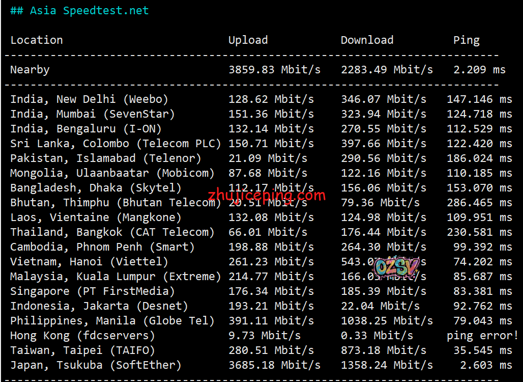 再看看除了中国大陆之外的亚洲区域内的节点测试的效果: