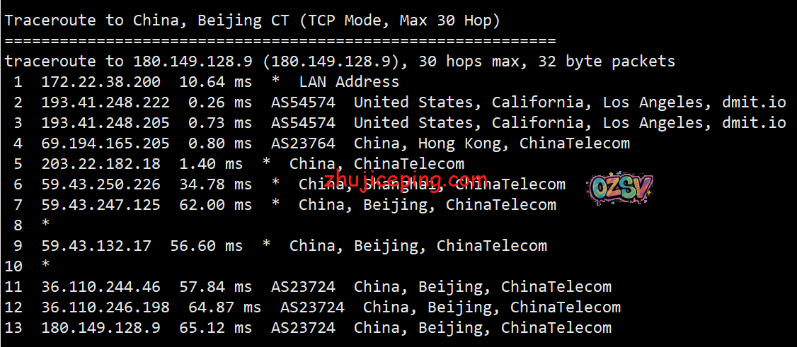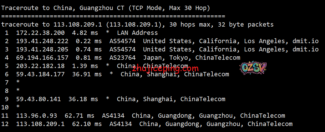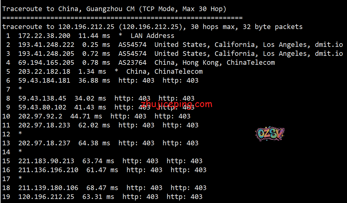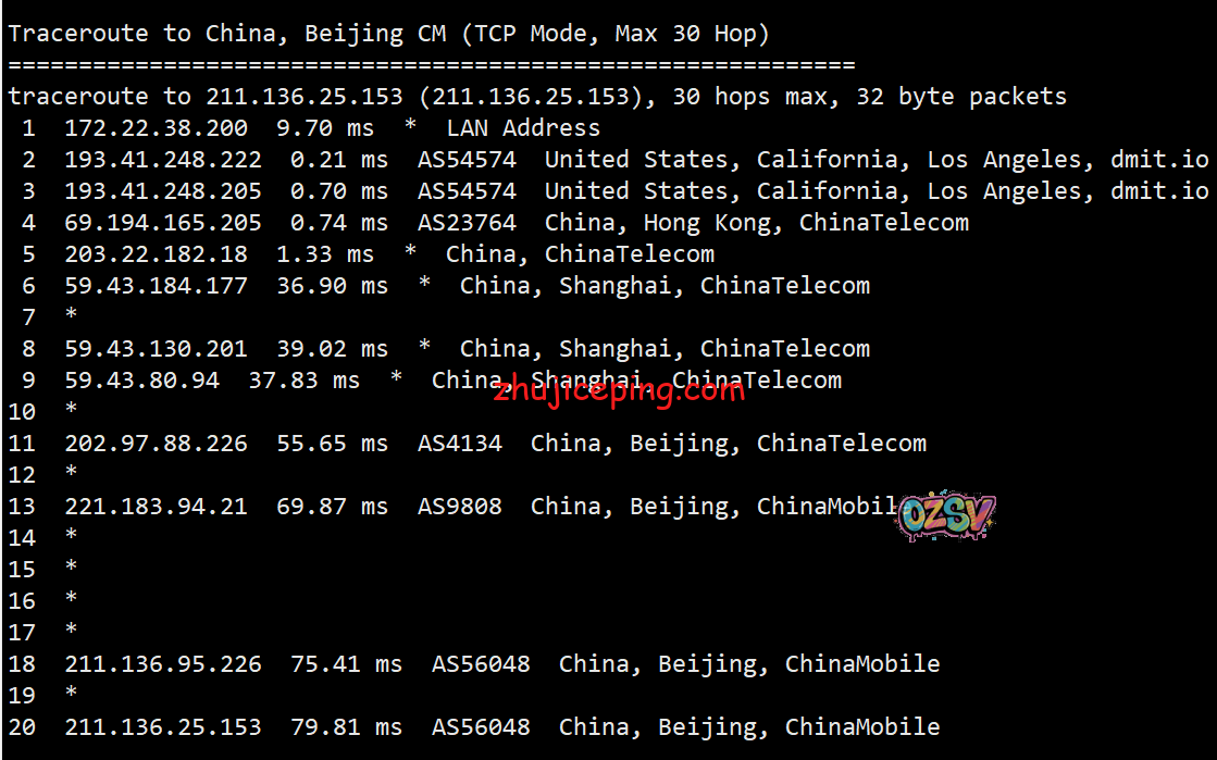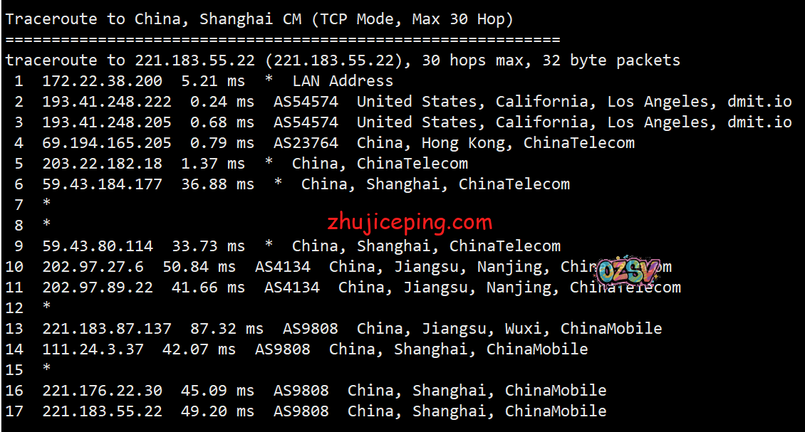 回程,到国内移动:机房出来直接走CN2到国内,走的是上海入口