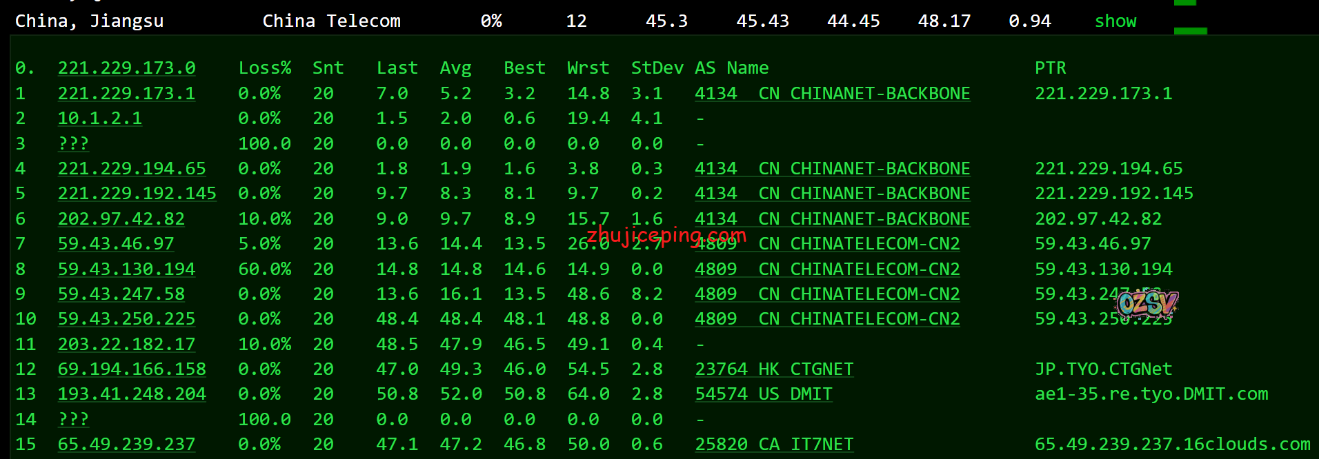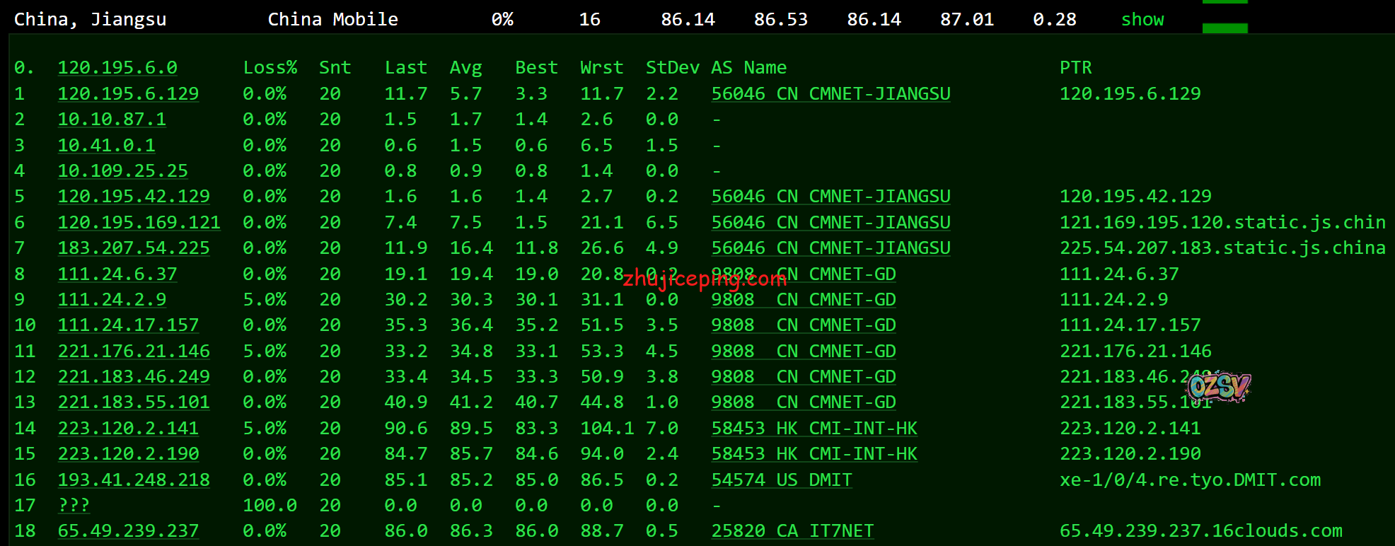 移动,CMI后直接直连到日本,回程也是走的电信CN2 GIA到上海入口回来;