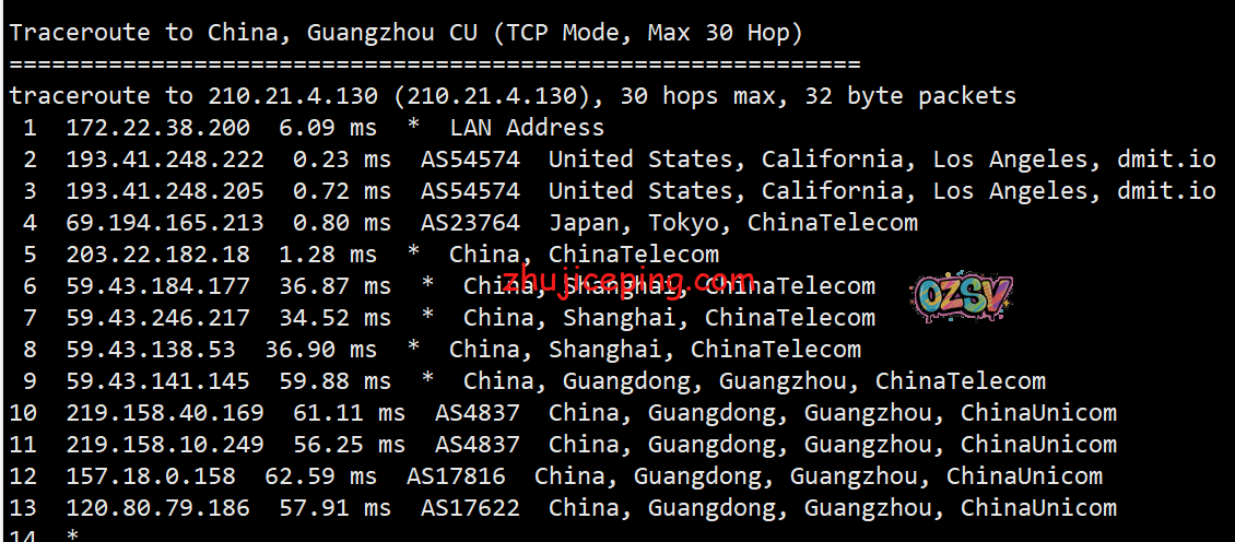联通去程,联通骨干到香港联通节点后去日本东京: