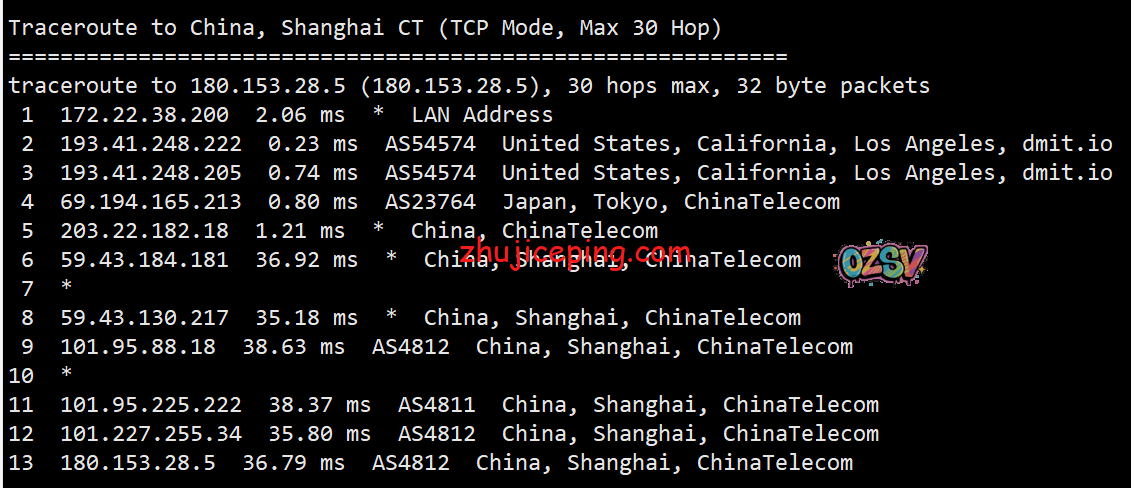 回程,到国内电信:机房出来走CN2直接到国内上海入口后分道扬镳