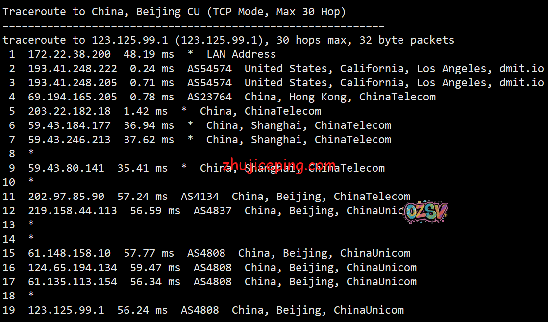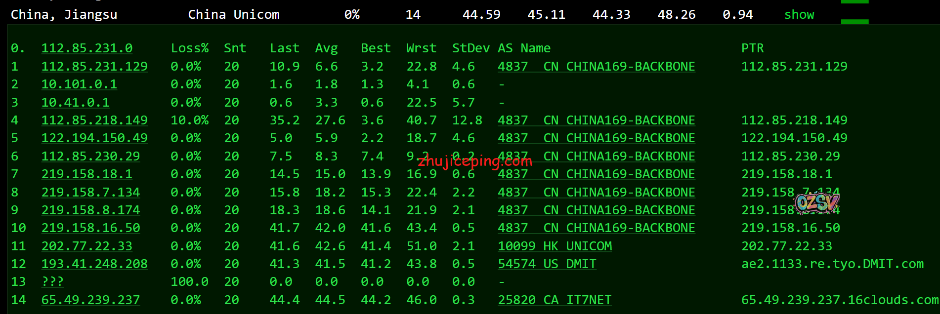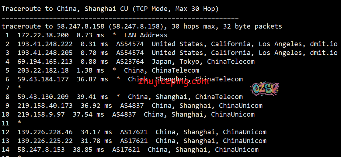 回程,到国内联通:走的是CN2线路,从国内上海入口进来