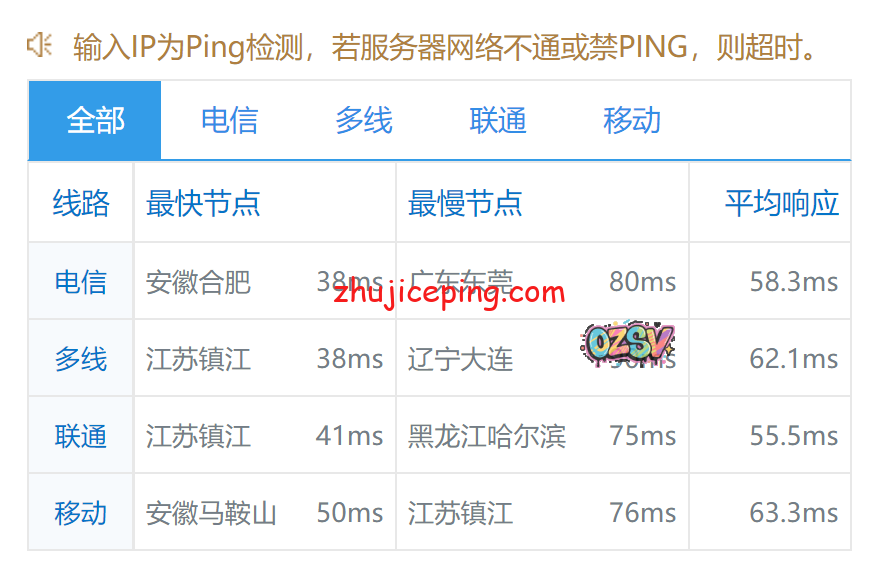 关注PING数据的话,看看ping.chinaz.com提供的全国七八十个节点的数据,下图是晚上八点测得: