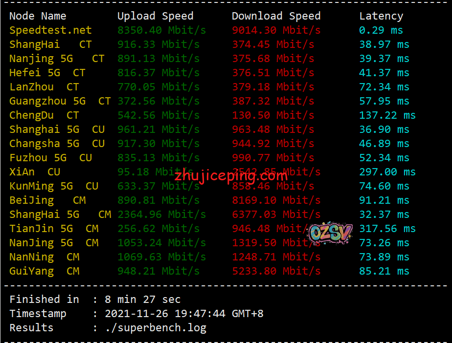 大家最关注的搬瓦工日本cn2 gia网络在中国大陆能跑到什么效果,对吧? 祭出speedtest.net的国内三网(电信、联通、移动)节点,我们来用节点测试一下能跑到多少的上行和下行带宽,这能说明问题了吧? 先看看晚高峰的数据吧: