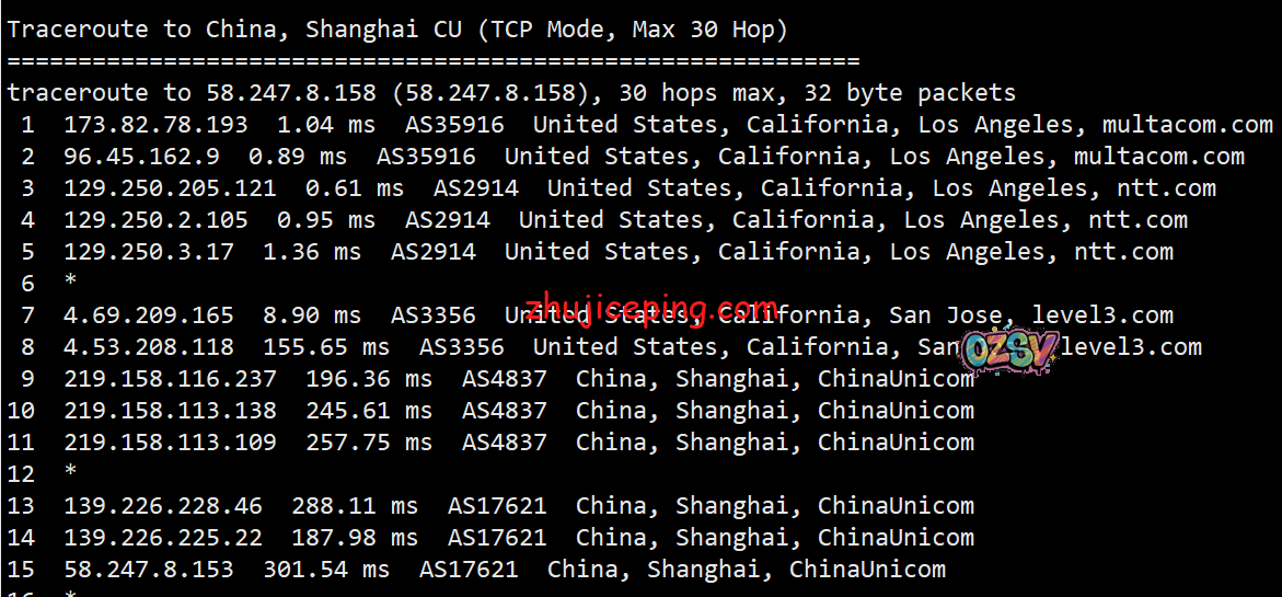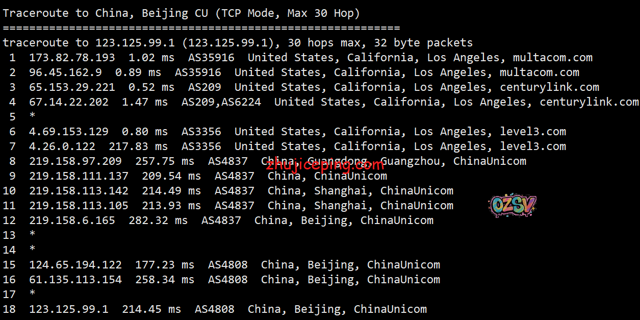 回程,到国内联通:从洛杉矶或者圣何塞走Level3或者cogentco走AS4837回来