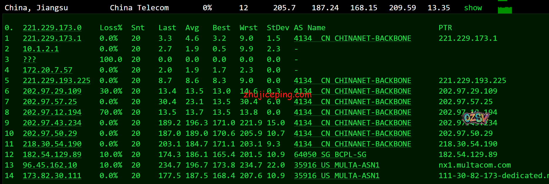 回程,也都是从圣何塞或者洛杉矶的三网节点直接回国;总体来说,网络优化还是比较到位的;但是,这依旧是常规网络,大家不要过多期待要达到cn2 gia 或者 cuii的效果。年付12美元,加上racknerd的靠谱服务,性价比还是很高的。值得推荐下!