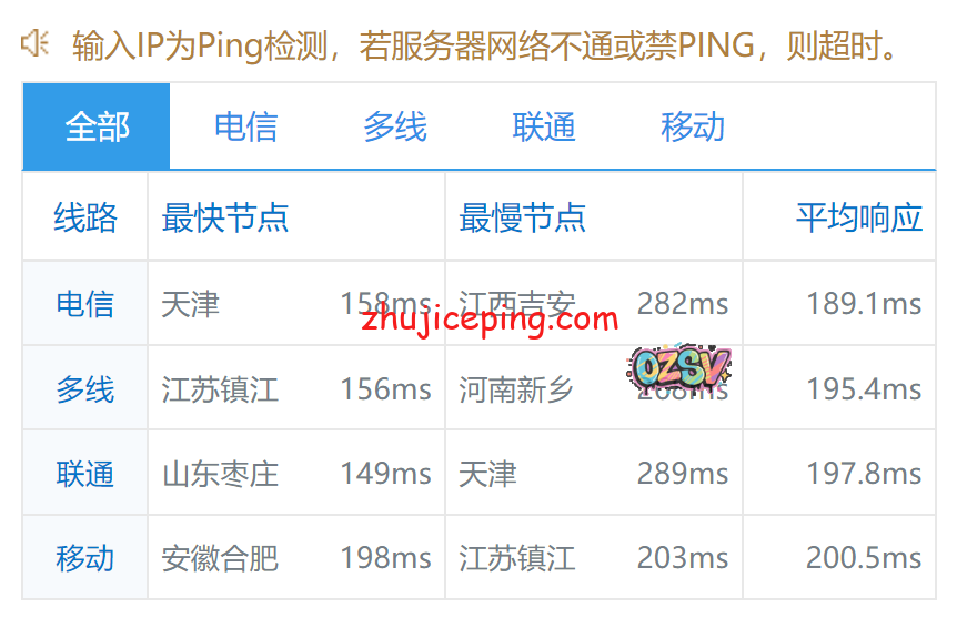ping.chinaz.com提供的全国80个节点的PING测试数据: