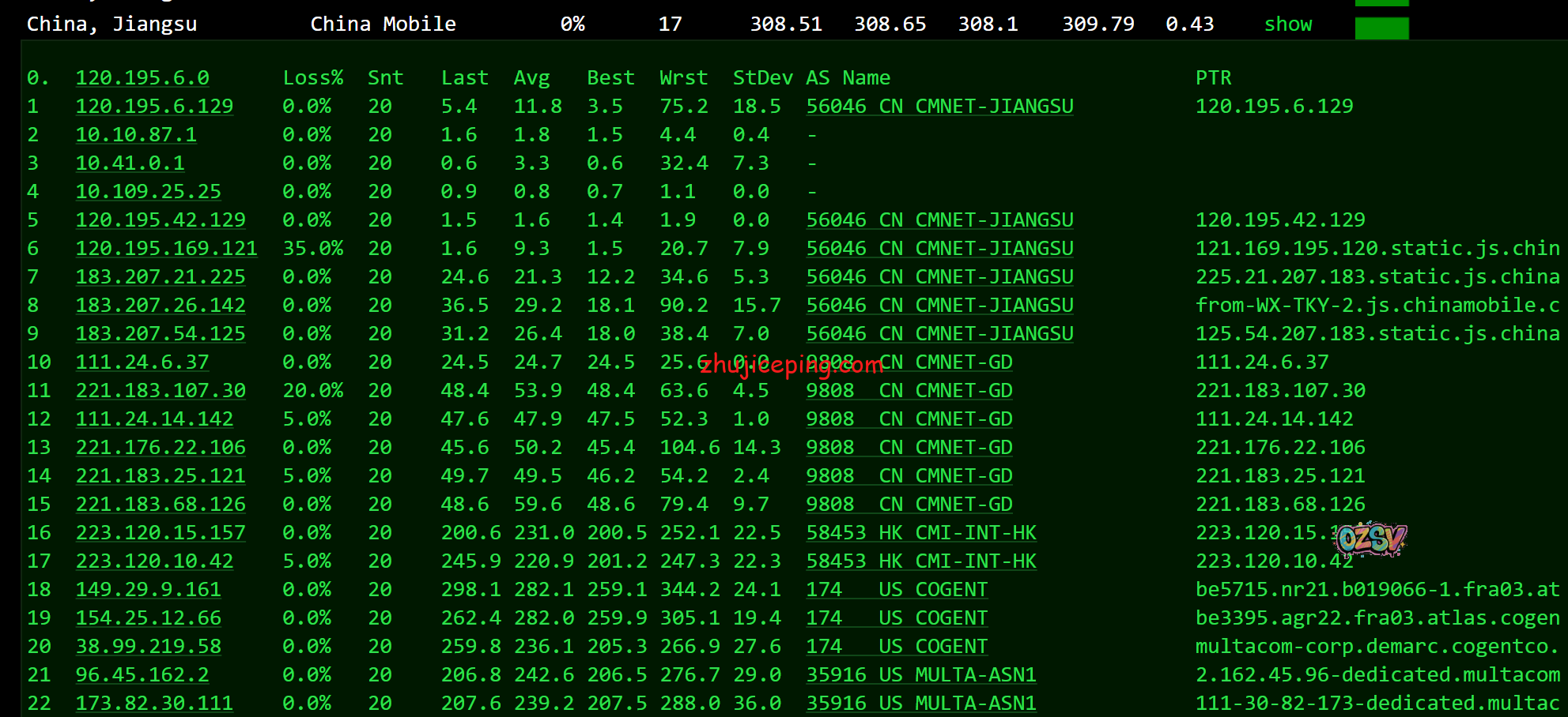 移动去程,香港CMI对接cogentco最后到MC机房: