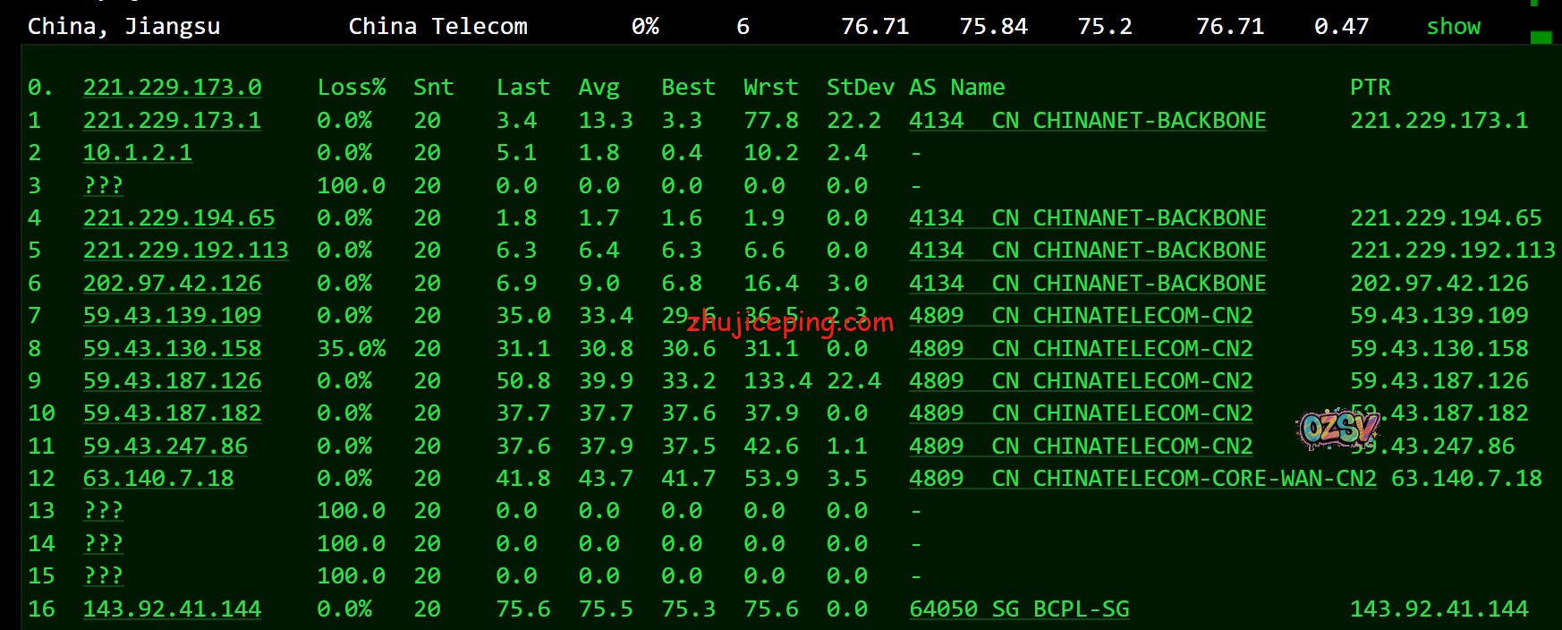 回程,到国内电信:柬埔寨到香港后走CN2回来
