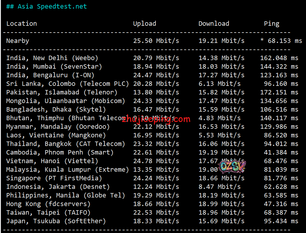 除了中国内地之外的其他亚洲地区测试节点的效果如下: