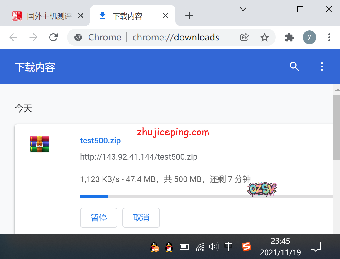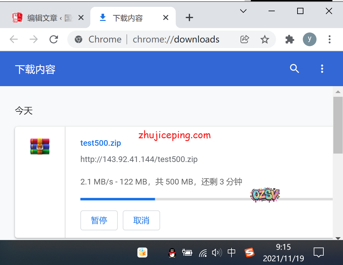 存放在测试VPS上的文件,站长是广州电信,下载速度大致在2.1MB/S: