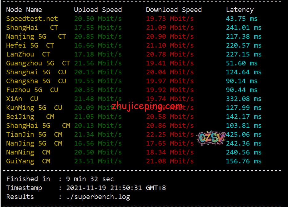 默认是20Mbps带宽,我们看看在国内能跑到什么样子,注意看下上下行,下图是speedtest的国内三网节点,测试时间是必填,基本上跑满没问题: