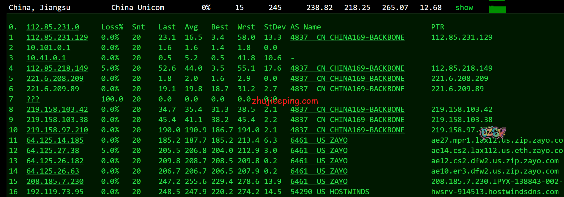 hostwinds接入的都是常规网络,没有针对中国大陆优化的高端网络(CN2\CUVIP等),在速度上面比不上美国的CN2 GIA、联通AS9929\4837,也比不上直连的亚洲线路!
