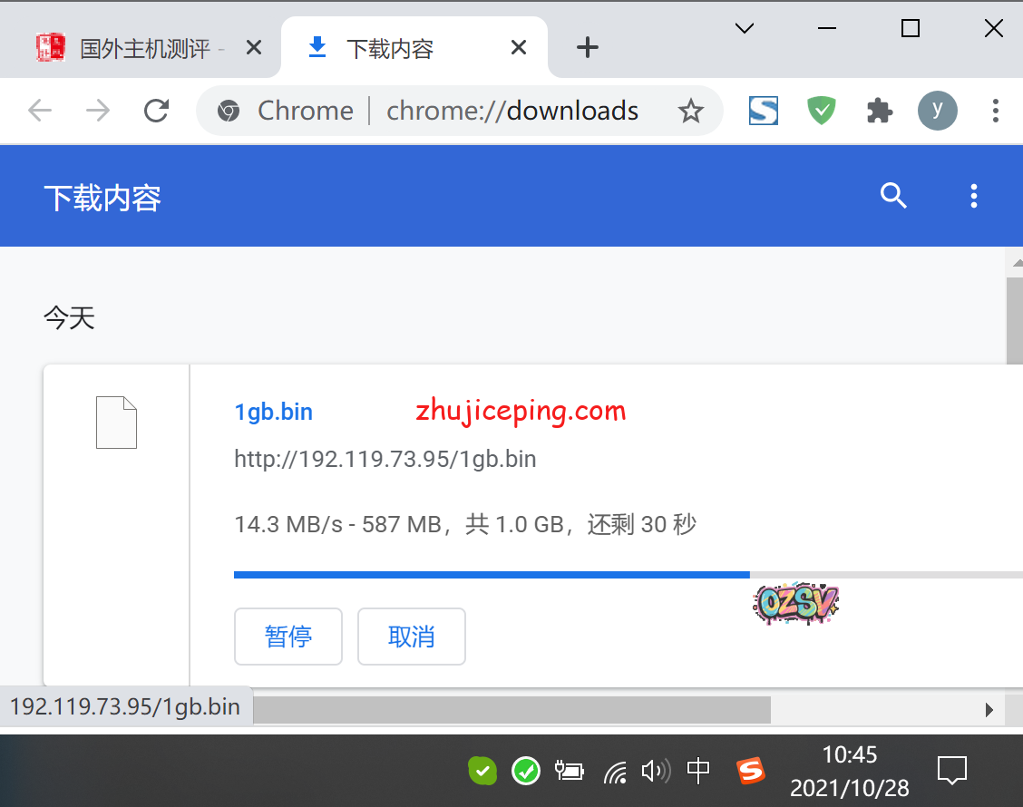 存放在VPS上的文件,站长为广州电信,上午测试下载速度可以达到14.3MB/S: